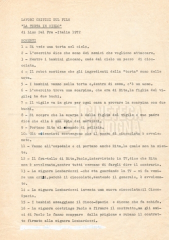 Avvertenza: La pubblicazione online di alcune riproduzioni di soggetti, trattamenti e sceneggiature scritti da Suso Cecchi d’Amico in collaborazione con altri, è stata effettuata a solo scopo di studio e ricerca.