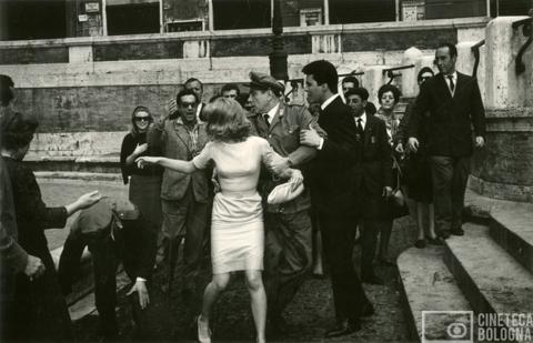 Roma. Mara Blasetti e un uomo non identificato durante le riprese del film Gidget Goes to Rome