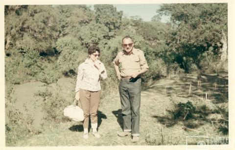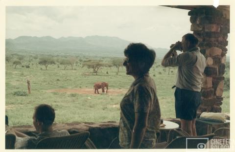 Dancalia. Mara Blasetti e un uomo non identificato durante i sopralluoghi per il film per la televisione Verso l’avventura