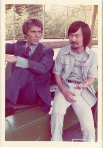 Giuliano Gemma e Jimmy Iwasaki durante le riprese di un cortometraggio