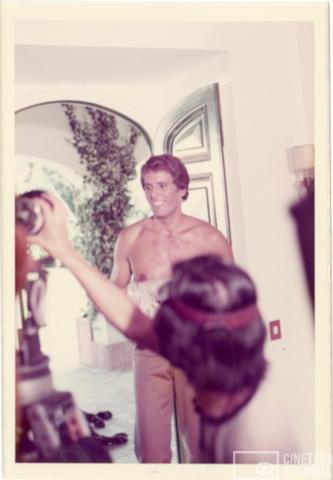 Giuliano Gemma durante le riprese di un cortometraggio pubblicitario