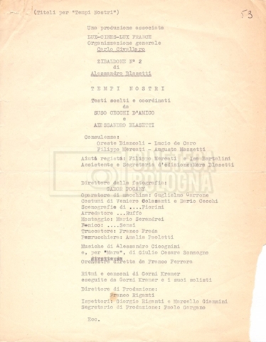 Avvertenza: La pubblicazione online di alcune riproduzioni di soggetti, trattamenti e sceneggiature scritti da Suso Cecchi d’Amico in collaborazione con altri, è stata effettuata a solo scopo di studio e ricerca.