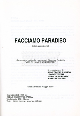 Avvertenza: La pubblicazione online di alcune riproduzioni di soggetti, trattamenti e sceneggiature scritti da Suso Cecchi d’Amico in collaborazione con altri, è stata effettuata a solo scopo di studio e ricerca.