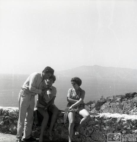 Punta Rossa. Mara Blasetti, Anna Gruber e un uomo non identificato durante le riprese del film Io amo, tu ami…
