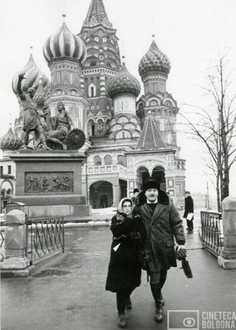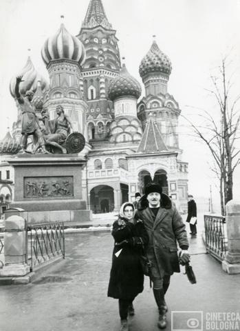 Mosca. Mara Blasetti e Alessandro Blasetti presso la Cattedrale di San Basilio durante le riprese del film Io amo, tu ami…