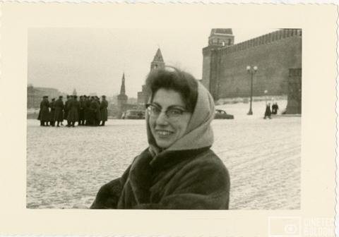Mosca. Mara Blasetti presso la Piazza Rossa durante le riprese del film Io amo, tu ami…