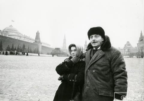 Mosca. Mara Blasetti e Alessandro Blasetti presso la Piazza Rossa durante le riprese del film Io amo, tu ami…