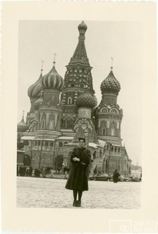 Mosca. Mara Blasetti alla Cattedrale di San Basilio presso la Piazza Rossa durante le riprese del film Io amo, tu ami…