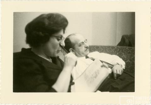 Mosca. Luciano Tonti e Mara Blasetti in pausa durante le riprese del film Io amo, tu ami…