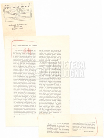 “Fortini. Il testo di Fortini pubblicato a puntate sui giornali; il commento del film; su Fortini: scrittori e cinema tra gli anni 50 e 60; articolo di Fortini sul testo”