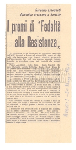 “Premio di fedeltà alla Resistenza”