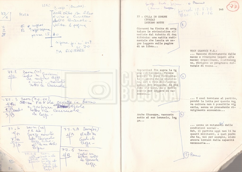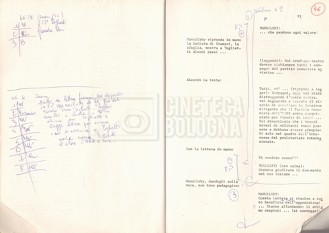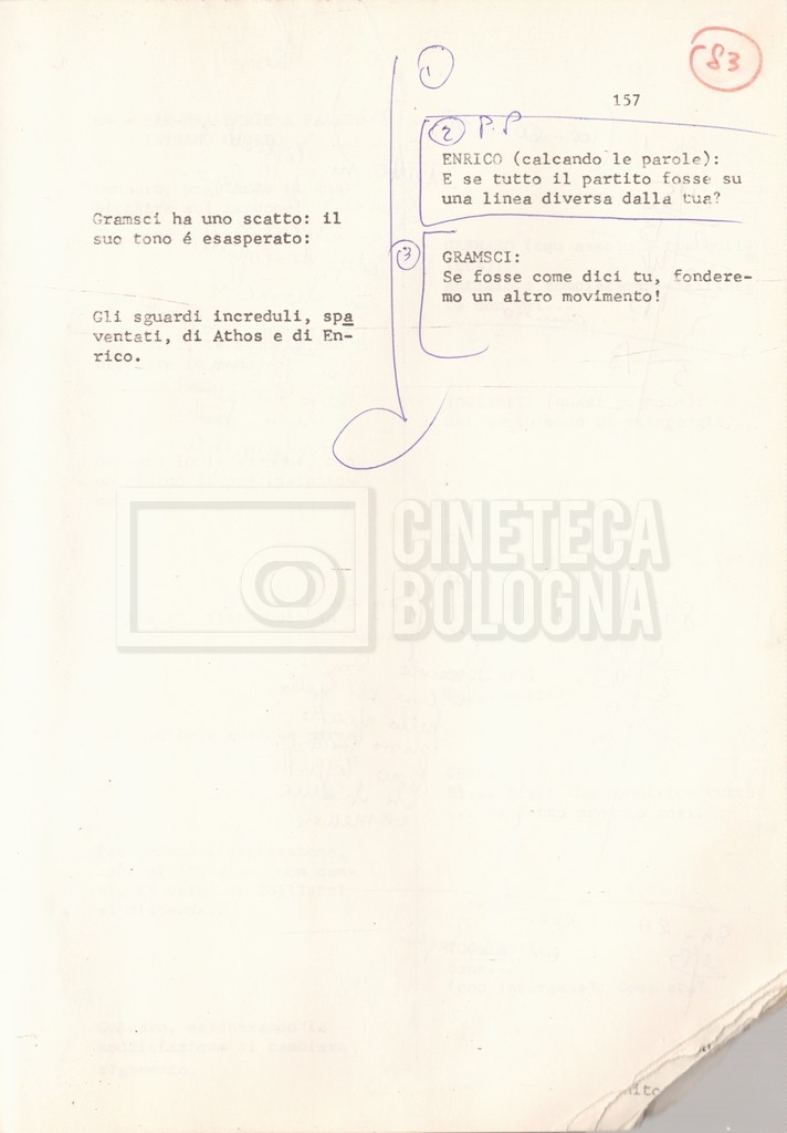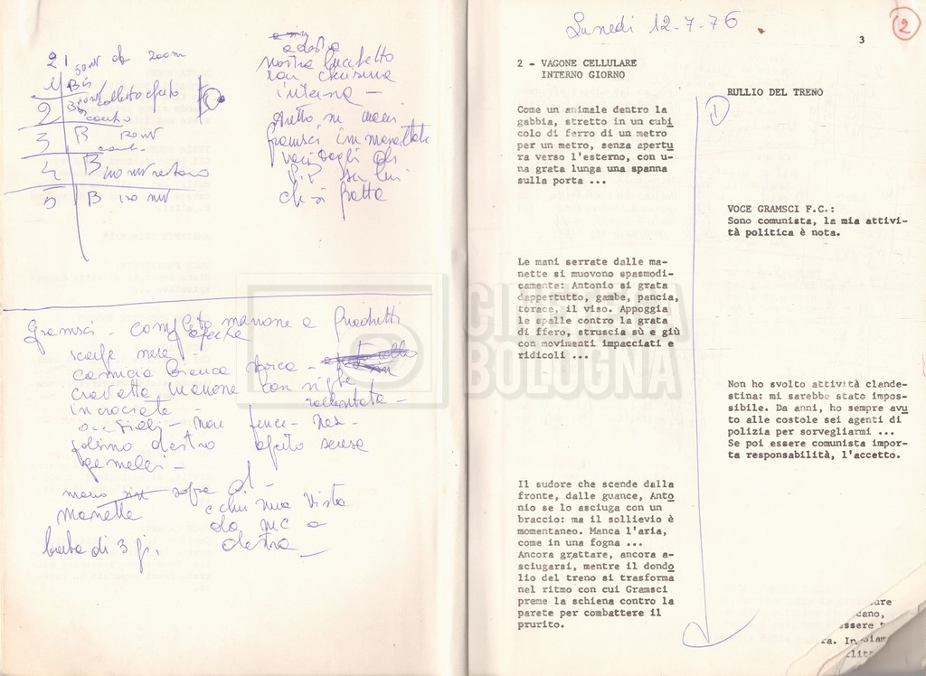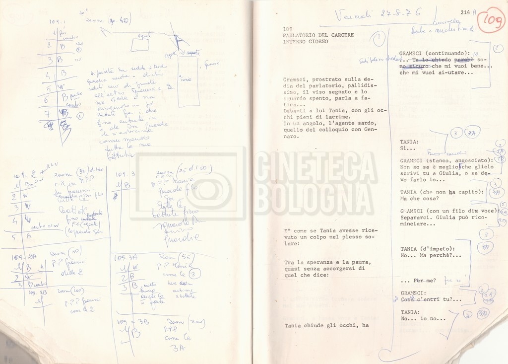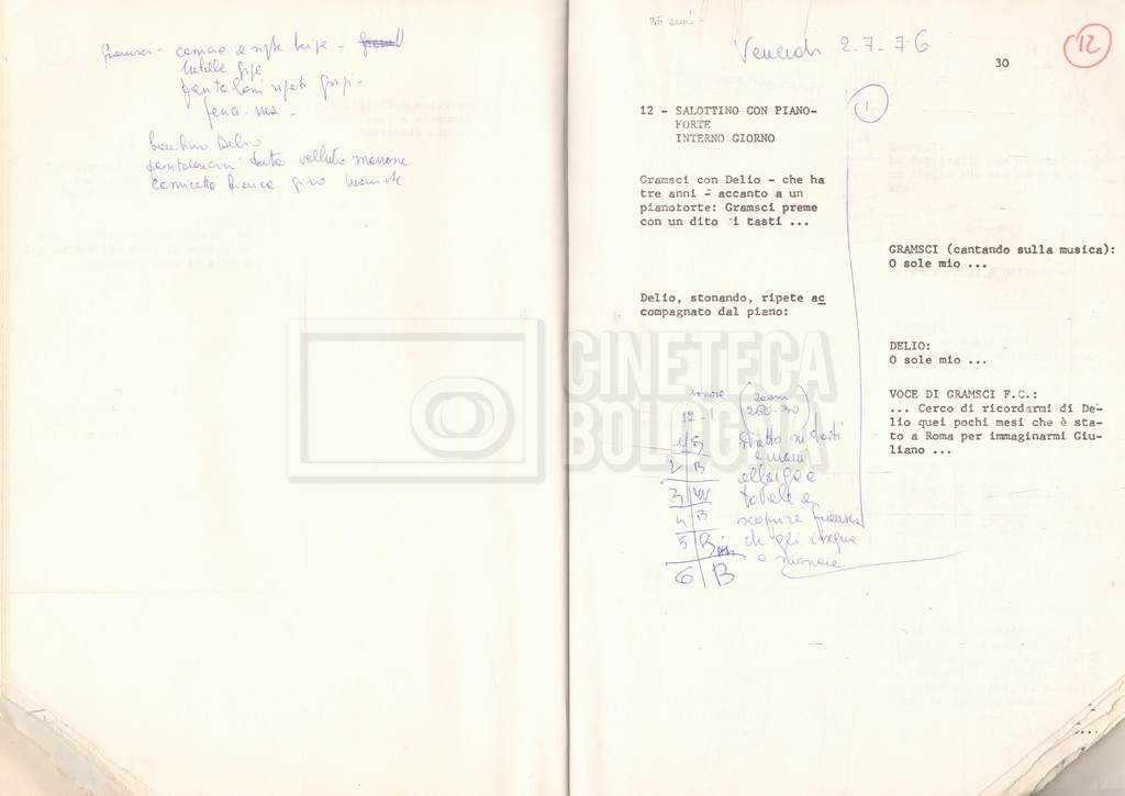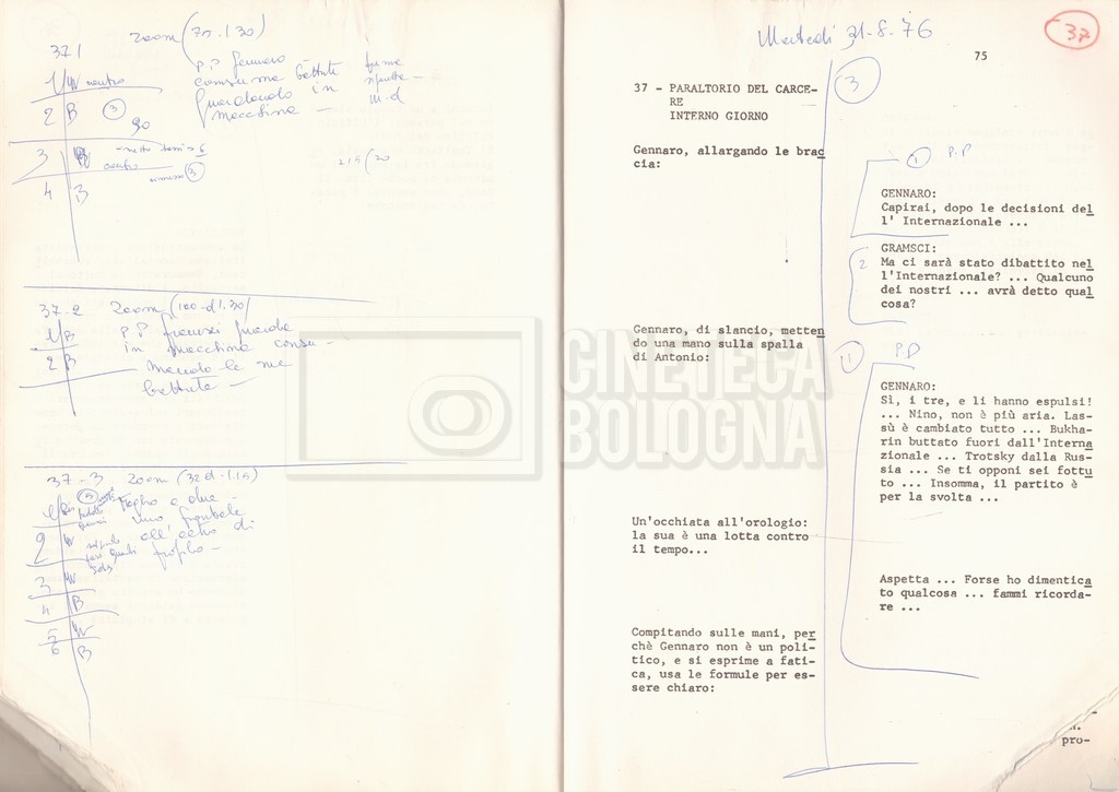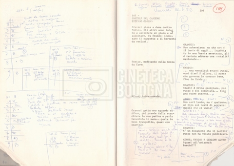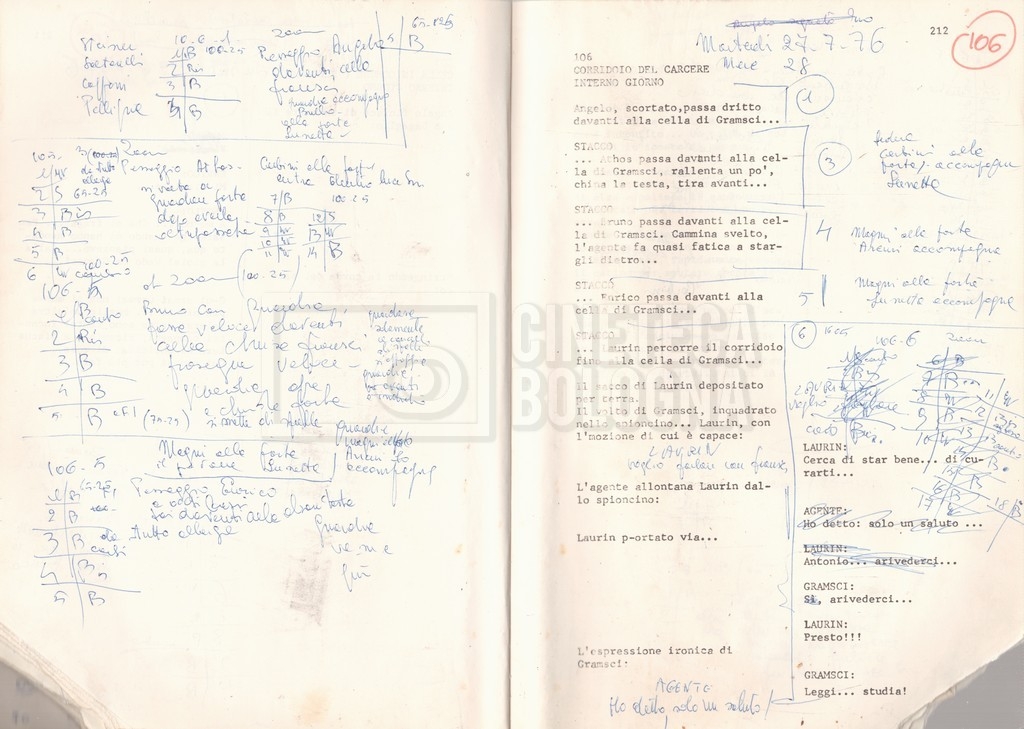 Torna alla banca dati “Antonio Gramsci; copia edizione” Documento storico Fondo Cecilia Mangini – Lino Del Fra / “Film di fiction realizzati” / “Antonio Gramsci – I giorni del carcere” Informazioni archivistiche Cronologia: 1976 Numero di ordinamento definitivo: 4.2.13 Numero di ordinamento provvisorio: 13.02 Descrizione fisica: volume Immagini digitalizzate Informazioni sul film titolo originale: Antonio Gramsci – I giorni del carcere regia: Del Fra, Lino anno: 1977 paese di produzione: Italia lingua principale: italiana Documenti correlati Vai alla banca dati DOCUMENTO STORICO “Preventivo; piano di lavorazione (il primo)” DOCUMENTO STORICO “Prima versione sceneggiatura; scaletta desunta” DOCUMENTO STORICO “Il soggetto stampato; trattamento; trattamento in francese” DOCUMENTO STORICO “Diari di lavorazione” DOCUMENTO STORICO “Appunti per la sceneggiatura” DOCUMENTO STORICO “Ordini del giorno” DOCUMENTO STORICO “Il casting; gli ambienti” DOCUMENTO STORICO “Durante le riprese” DOCUMENTO STORICO “I titoli di testa; i titoli di coda; le percentuali di grandezza” DOCUMENTO STORICO “Lettere sul film; nota bene: presidente della Camera dei deputati era Sandro Pertini” DOCUMENTO STORICO “I contratti degli attori” DOCUMENTO STORICO “Scene soppresse” DOCUMENTO STORICO “Antonio Gramsci; sceneggiatura” DOCUMENTO STORICO “Antonio Gramsci; copia doppiaggio” DOCUMENTO STORICO “Antonio Gramsci; dialoghi definitivi per il doppiaggio e per il ministero” DOCUMENTO STORICO “Materiale Italnoleggio” DOCUMENTO STORICO “Interviste a Lino Del Fra” DOCUMENTO STORICO “Riprese” DOCUMENTO STORICO “Corrispondenza con Claude Ledû” DOCUMENTO STORICO Rassegna stampa
