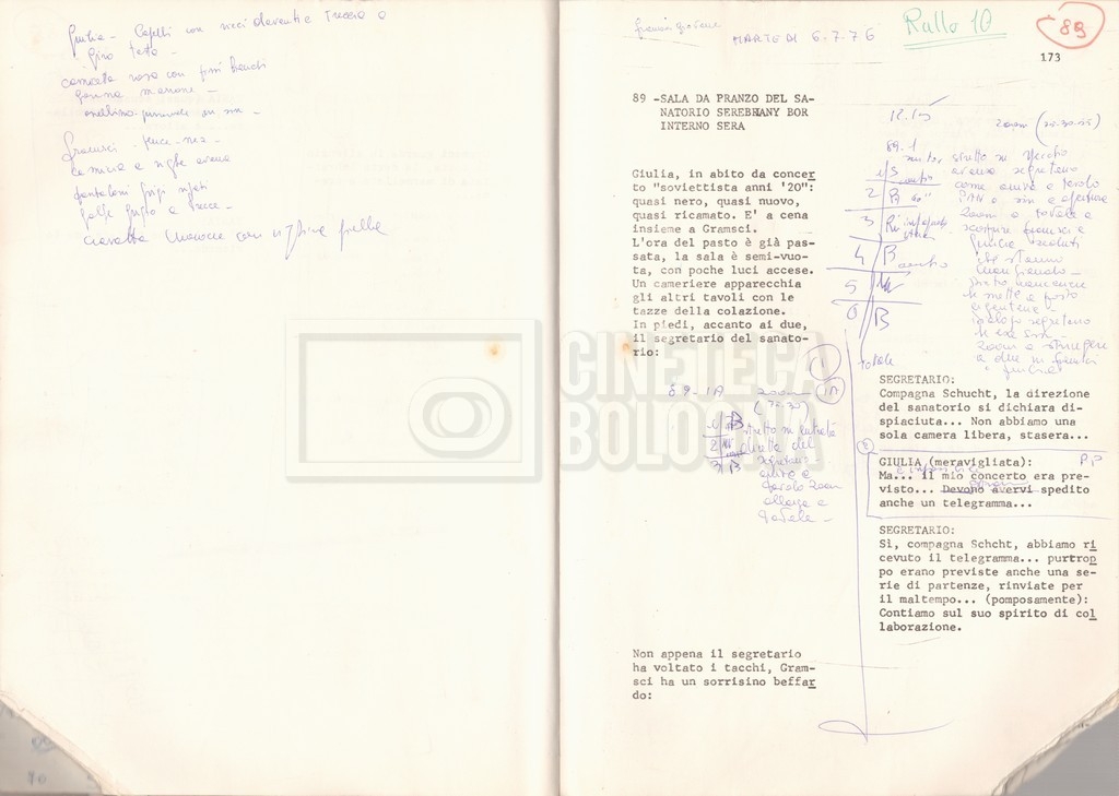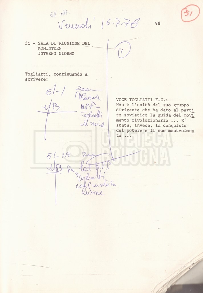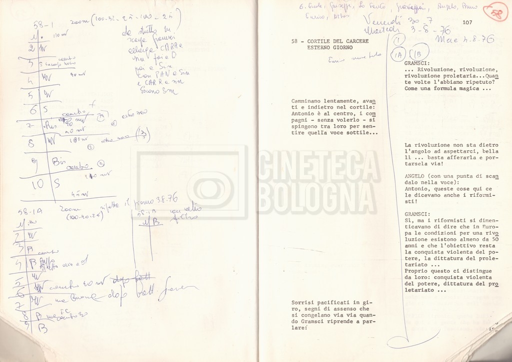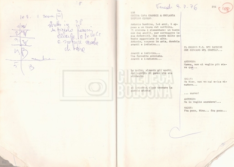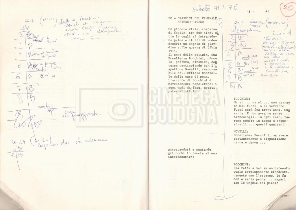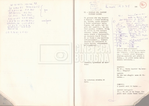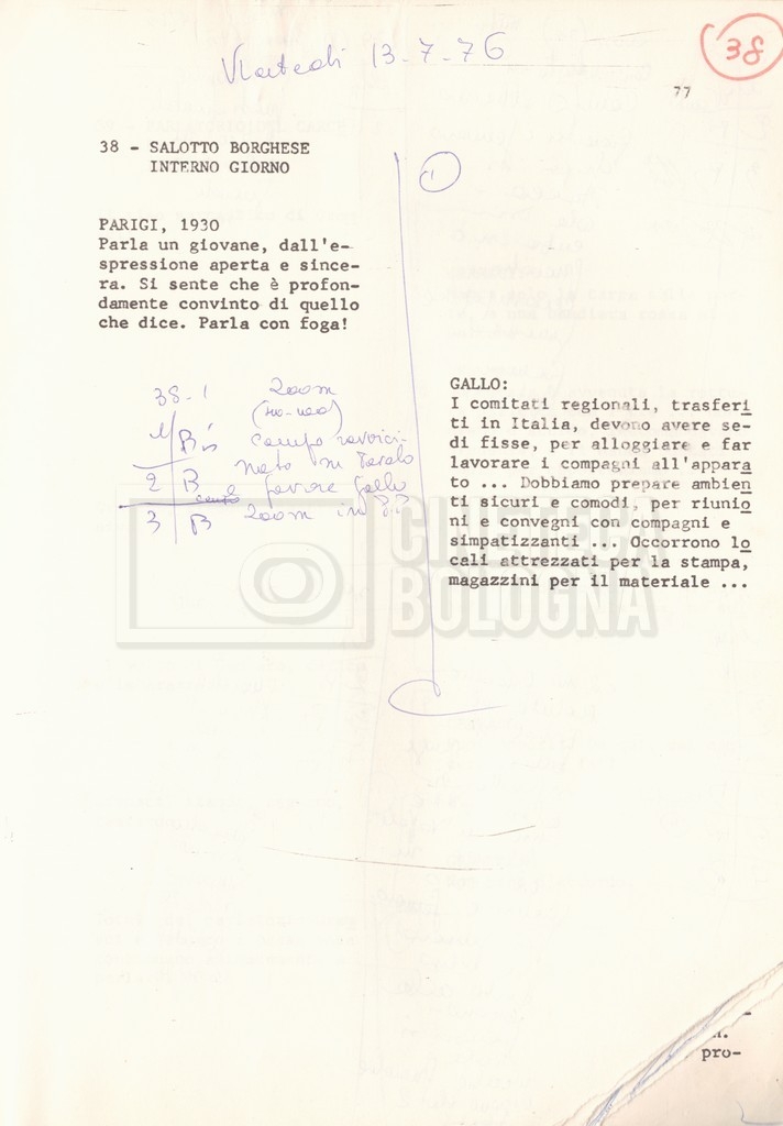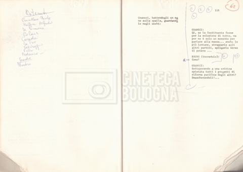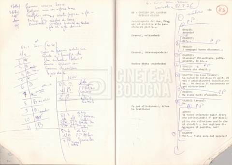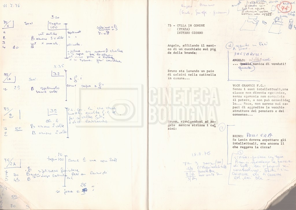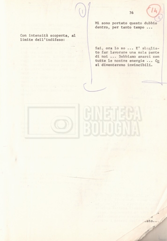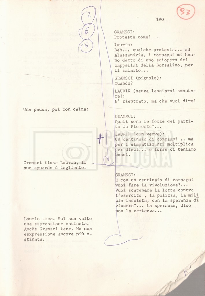 Torna alla banca dati “Antonio Gramsci; copia edizione” Documento storico Fondo Cecilia Mangini – Lino Del Fra / “Film di fiction realizzati” / “Antonio Gramsci – I giorni del carcere” Informazioni archivistiche Cronologia: 1976 Numero di ordinamento definitivo: 4.2.13 Numero di ordinamento provvisorio: 13.02 Descrizione fisica: volume Immagini digitalizzate Informazioni sul film titolo originale: Antonio Gramsci – I giorni del carcere regia: Del Fra, Lino anno: 1977 paese di produzione: Italia lingua principale: italiana Documenti correlati Vai alla banca dati DOCUMENTO STORICO “Preventivo; piano di lavorazione (il primo)” DOCUMENTO STORICO “Prima versione sceneggiatura; scaletta desunta” DOCUMENTO STORICO “Il soggetto stampato; trattamento; trattamento in francese” DOCUMENTO STORICO “Diari di lavorazione” DOCUMENTO STORICO “Appunti per la sceneggiatura” DOCUMENTO STORICO “Ordini del giorno” DOCUMENTO STORICO “Il casting; gli ambienti” DOCUMENTO STORICO “Durante le riprese” DOCUMENTO STORICO “I titoli di testa; i titoli di coda; le percentuali di grandezza” DOCUMENTO STORICO “Lettere sul film; nota bene: presidente della Camera dei deputati era Sandro Pertini” DOCUMENTO STORICO “I contratti degli attori” DOCUMENTO STORICO “Scene soppresse” DOCUMENTO STORICO “Antonio Gramsci; sceneggiatura” DOCUMENTO STORICO “Antonio Gramsci; copia doppiaggio” DOCUMENTO STORICO “Antonio Gramsci; dialoghi definitivi per il doppiaggio e per il ministero” DOCUMENTO STORICO “Materiale Italnoleggio” DOCUMENTO STORICO “Interviste a Lino Del Fra” DOCUMENTO STORICO “Riprese” DOCUMENTO STORICO “Corrispondenza con Claude Ledû” DOCUMENTO STORICO Rassegna stampa