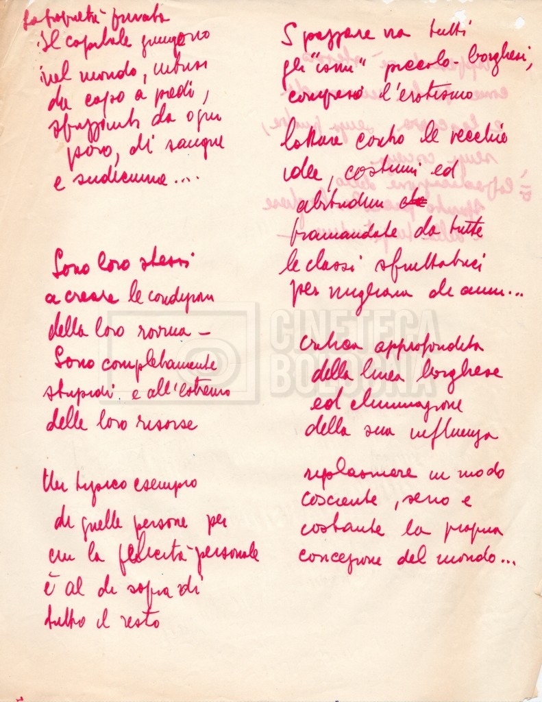 Contiene un articolo di giornale, in fotocopia, di Gino Nebiolo dal titolo “Processo a Pechino” (tratto da “Panorama” del 23 maggio 1968) e diversi appunti mss. e datt. tra cui si segnalano alcuni dei titoli: “Mao Tse Dong”, “Majakovski”, “Marx”, “Marcuse”, “Hu Hsienh The”, “Il maggio Francese”, “Stalin”, “Zdanov”.