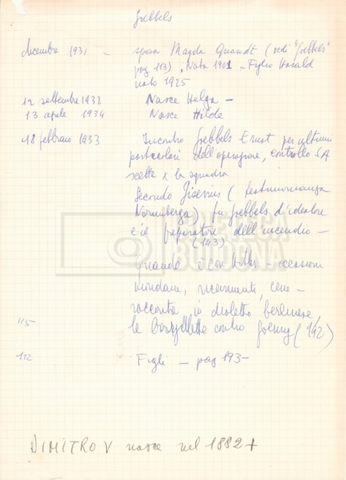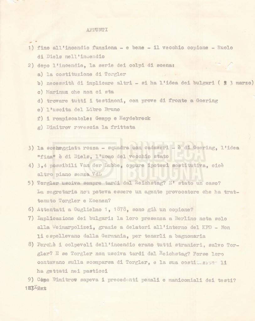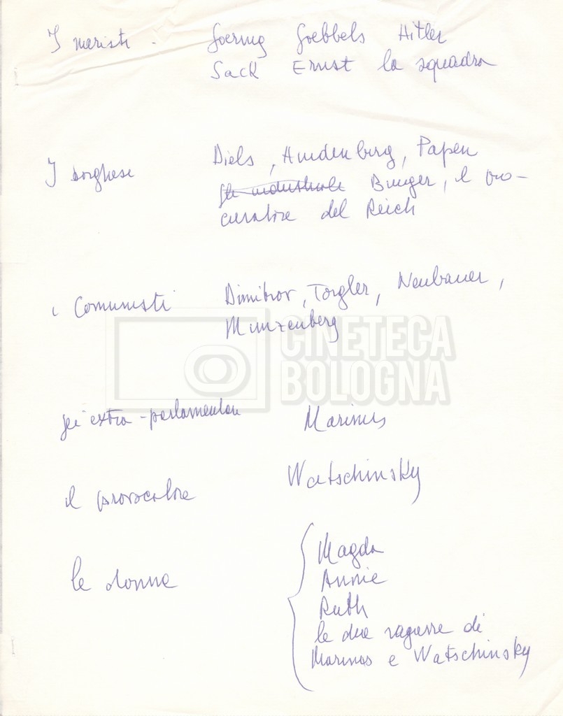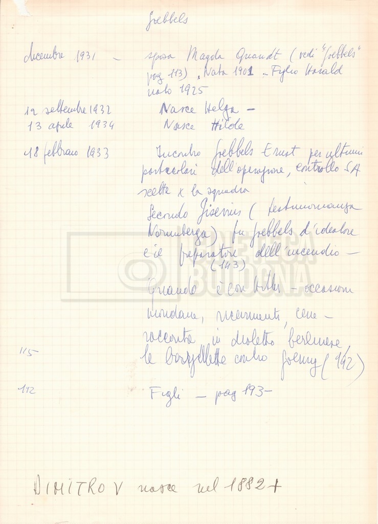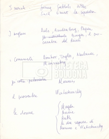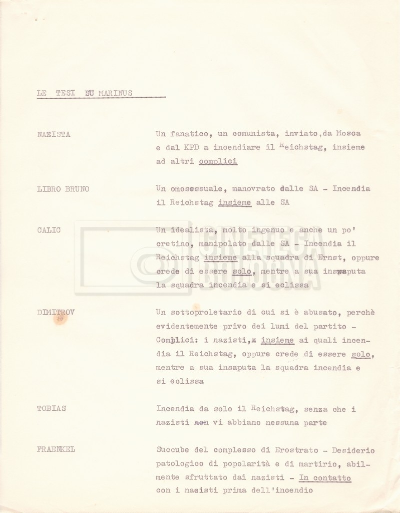 “Appunti su personaggi; Marinus Van Der Lubbe; Dimitrov; Hitler; Goering; Goebbels; Neubauer”