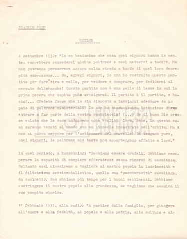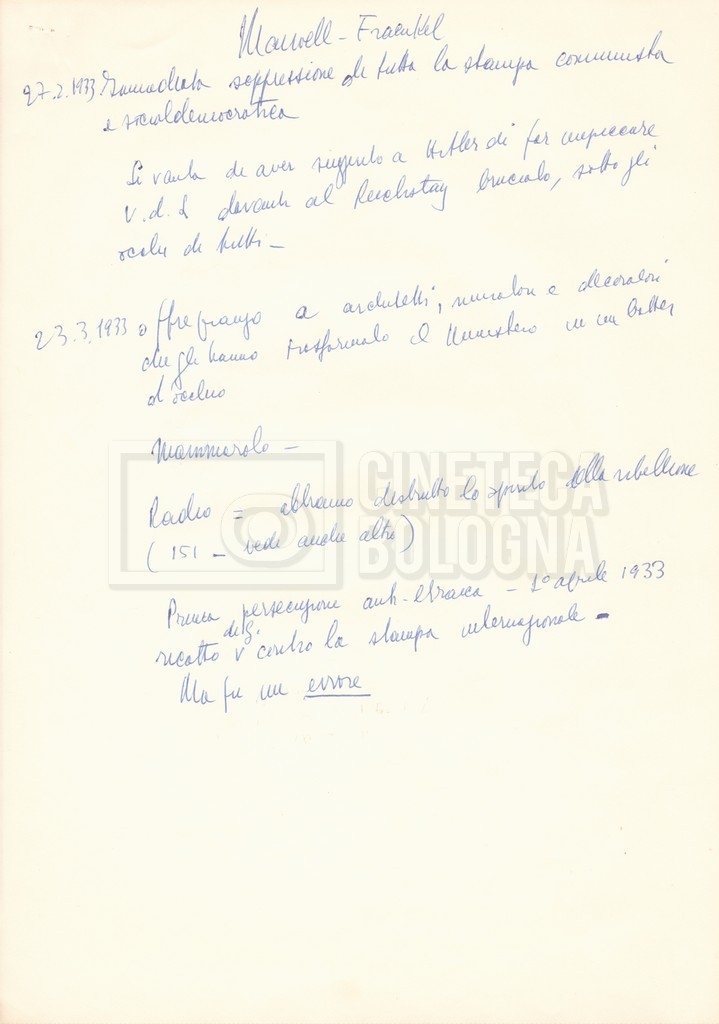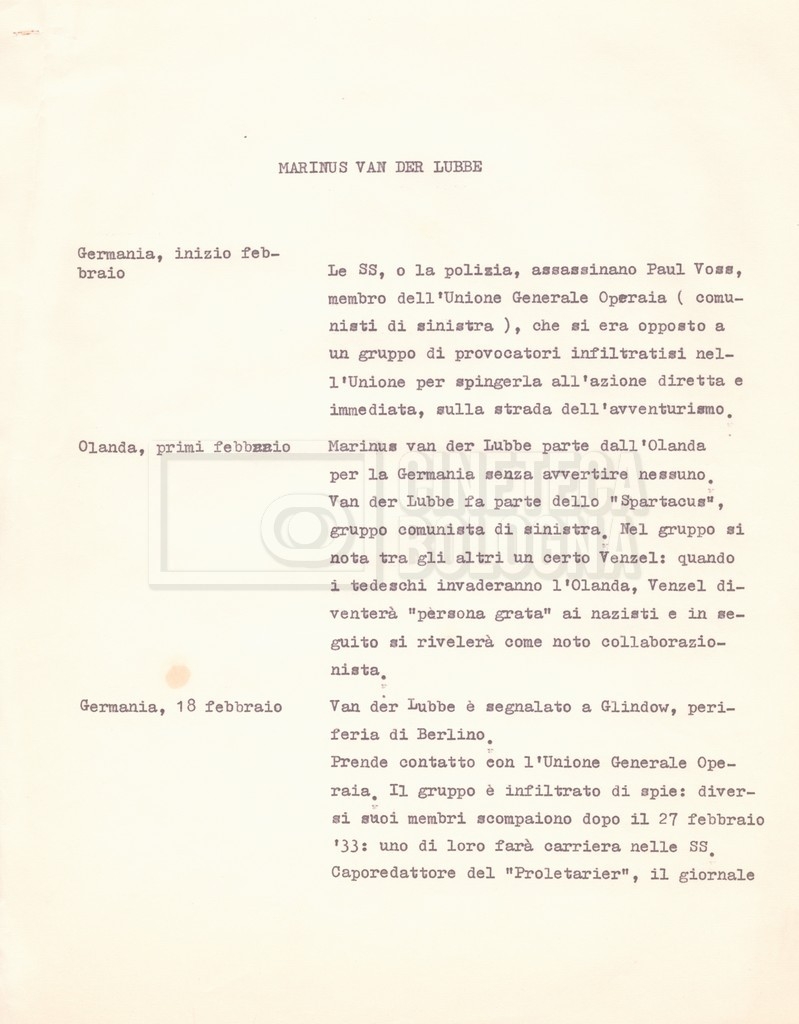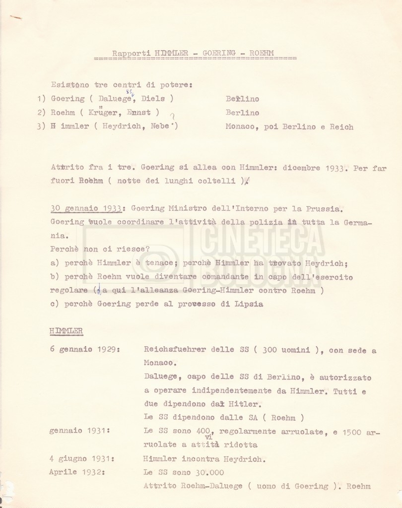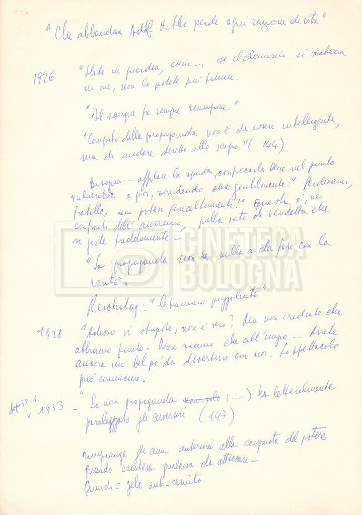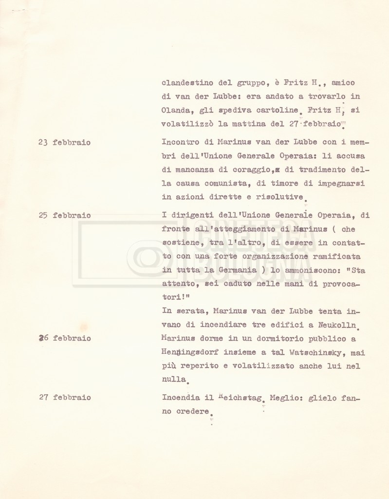 “Appunti su personaggi; Marinus Van Der Lubbe; Dimitrov; Hitler; Goering; Goebbels; Neubauer”