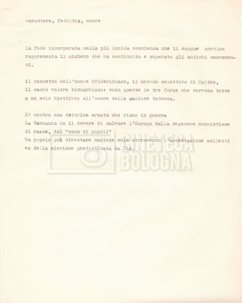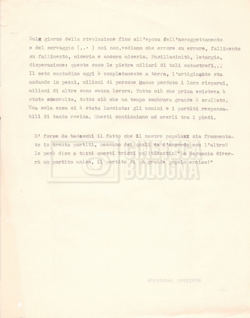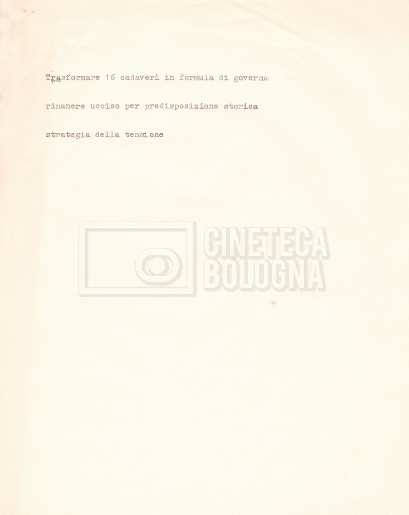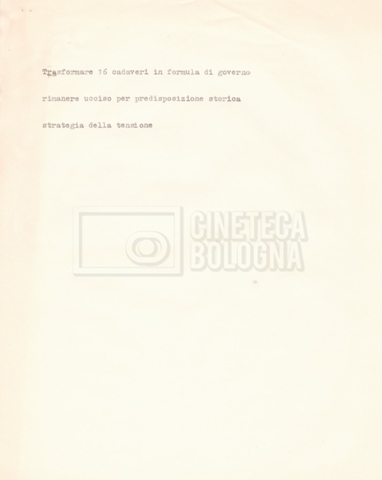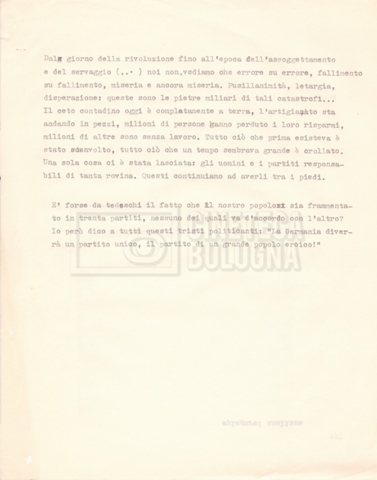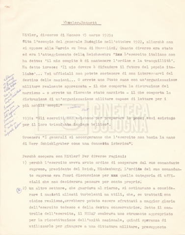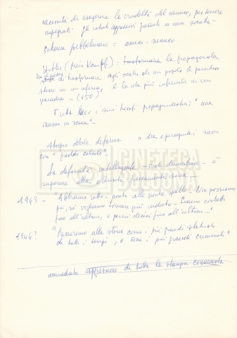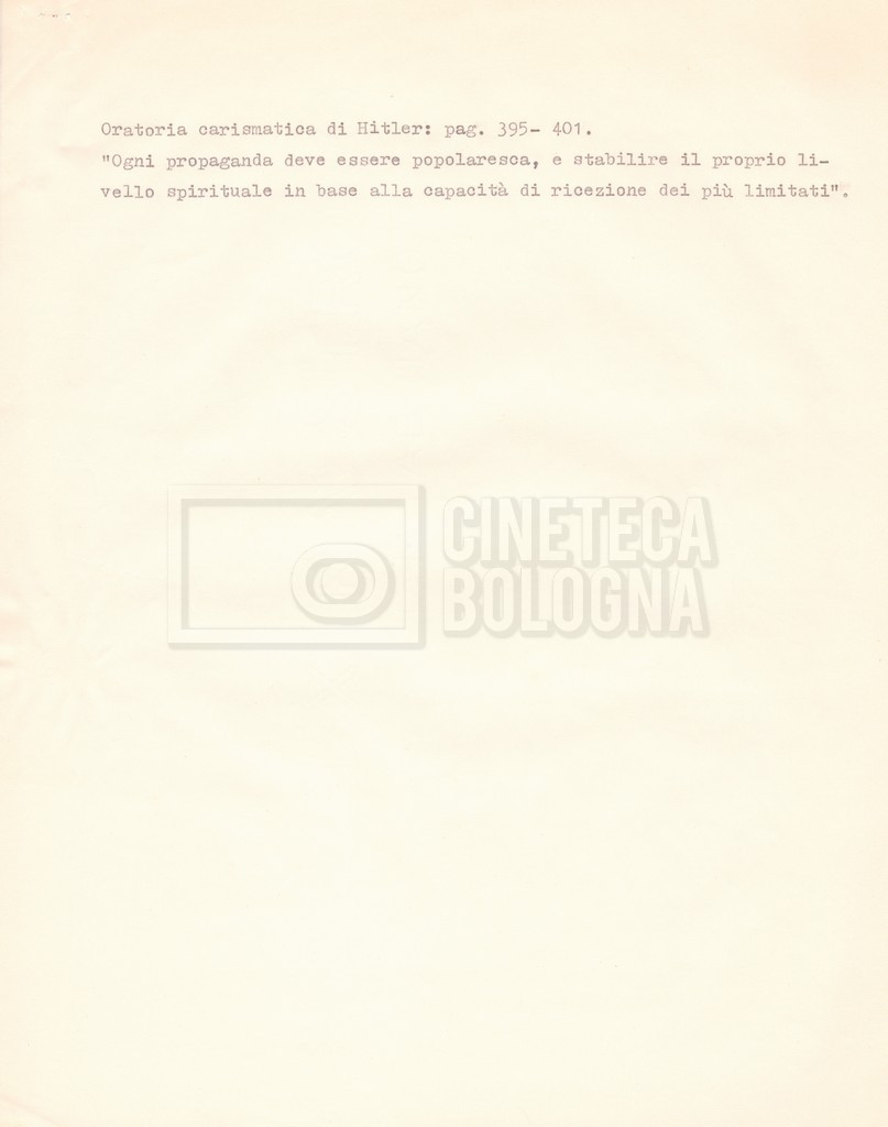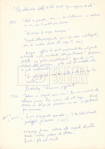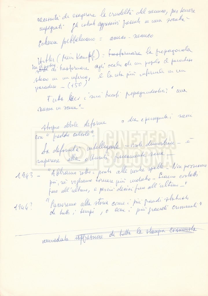 Si segnala, come materiale sciolto, un doc. con “appunti sui personaggi” intesi come attori sociali (Ad esempio “Borghesi”, “Comunisti”, “Cattolici”, ecc.) coinvolti negli eventi storici.