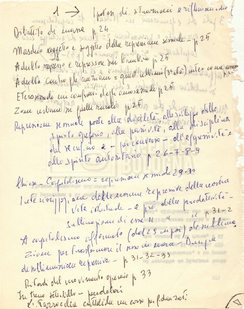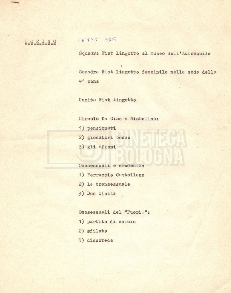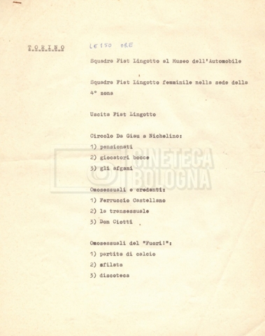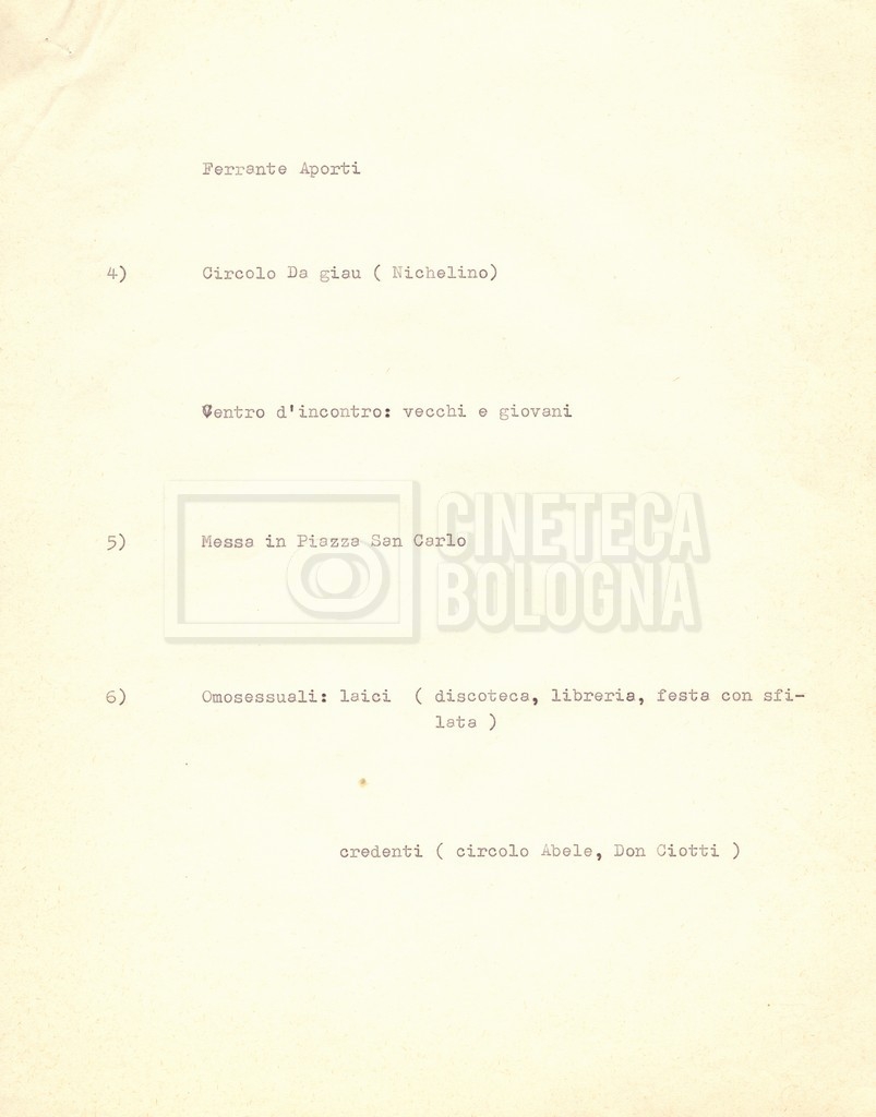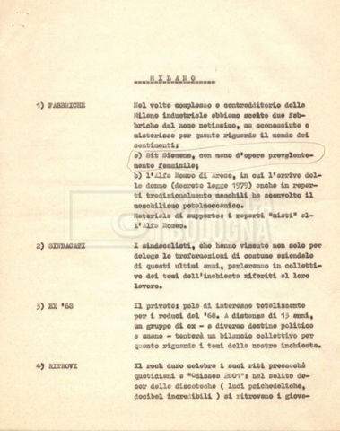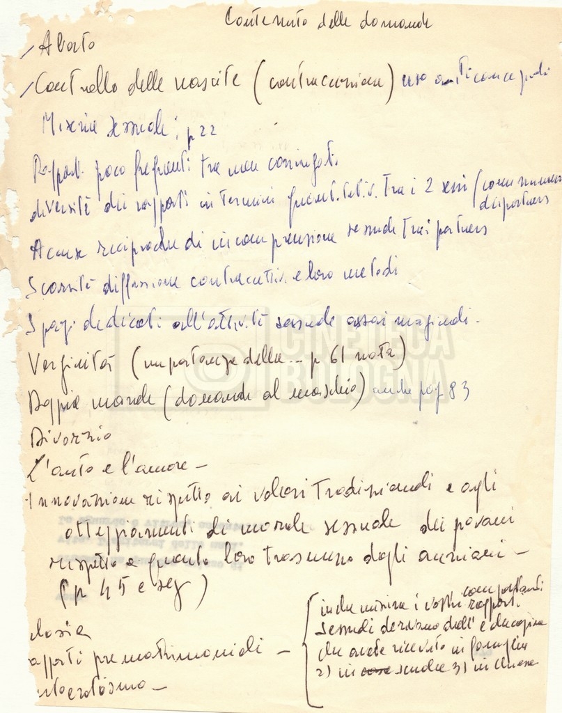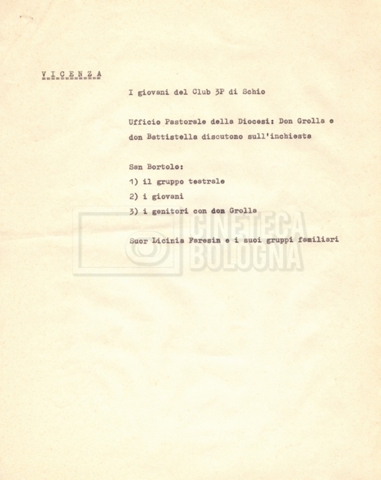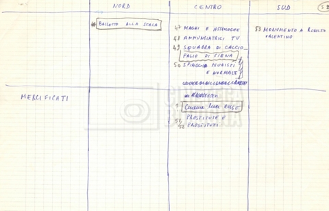 – ‘Schema dei sopralluoghi e appunti’: contiene appunti mss. di Lino Del Fra e un primo schema dei sopralluoghi di mano di Cecilia Mangini.