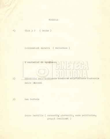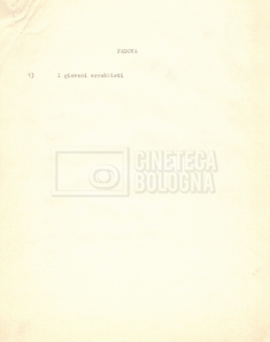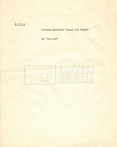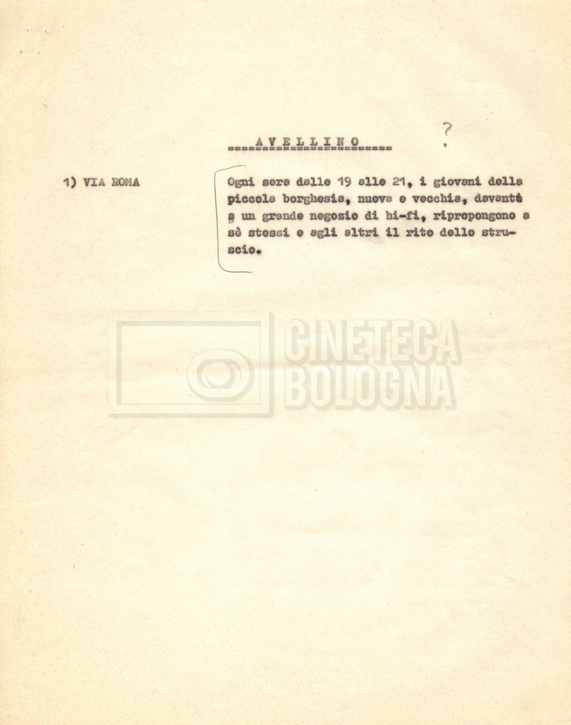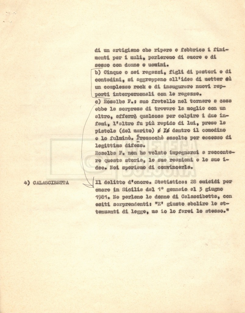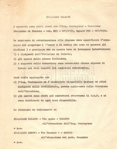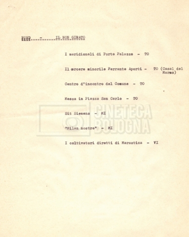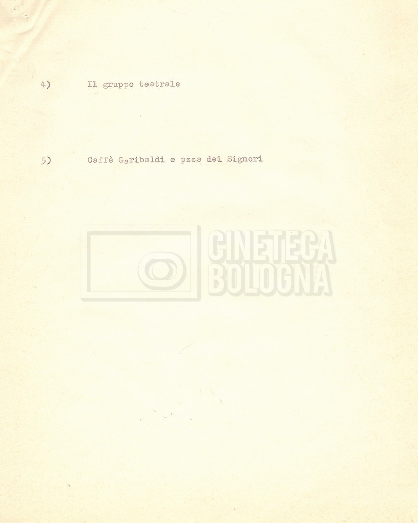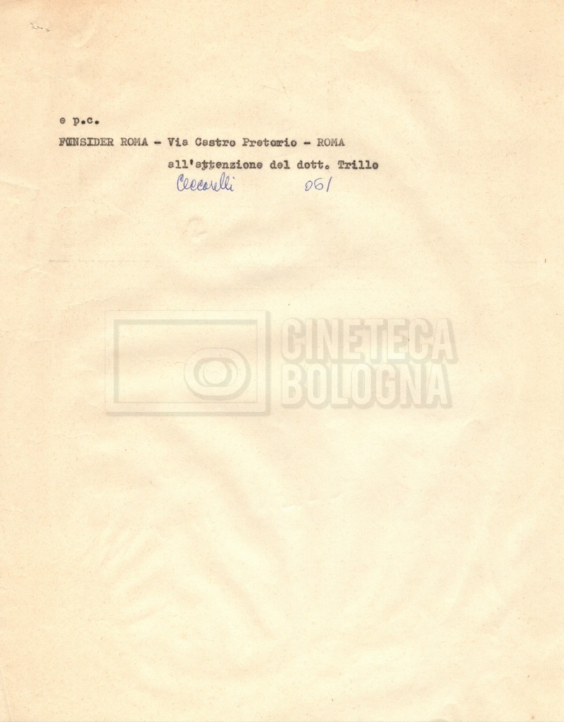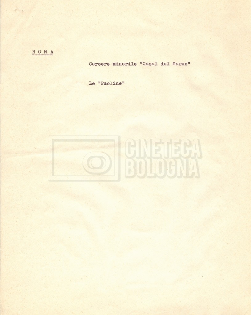 “Appunti sopralluoghi (Prima e seconda versione); prospetti per le riprese al nord, al centro-sud; appunti di Lino Del Fra; piano di lavorazione”