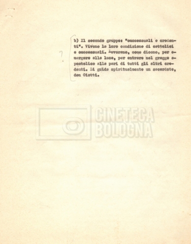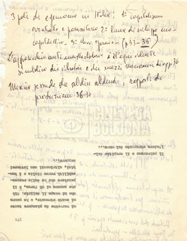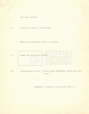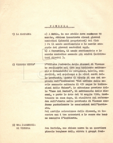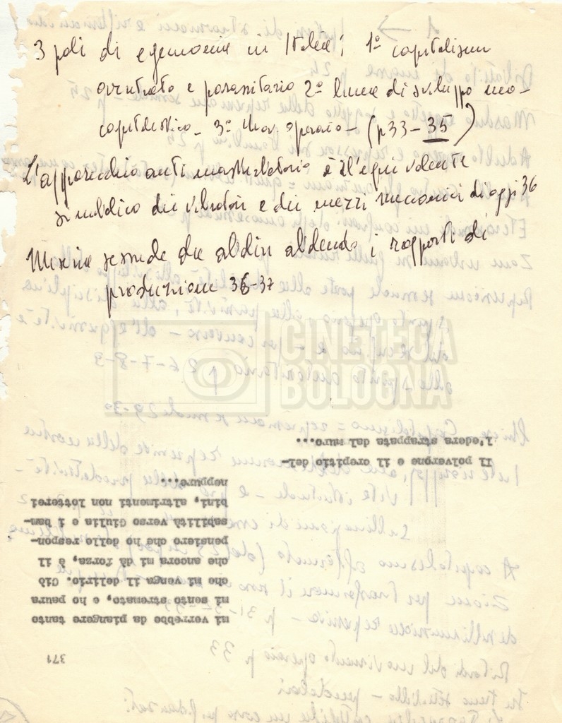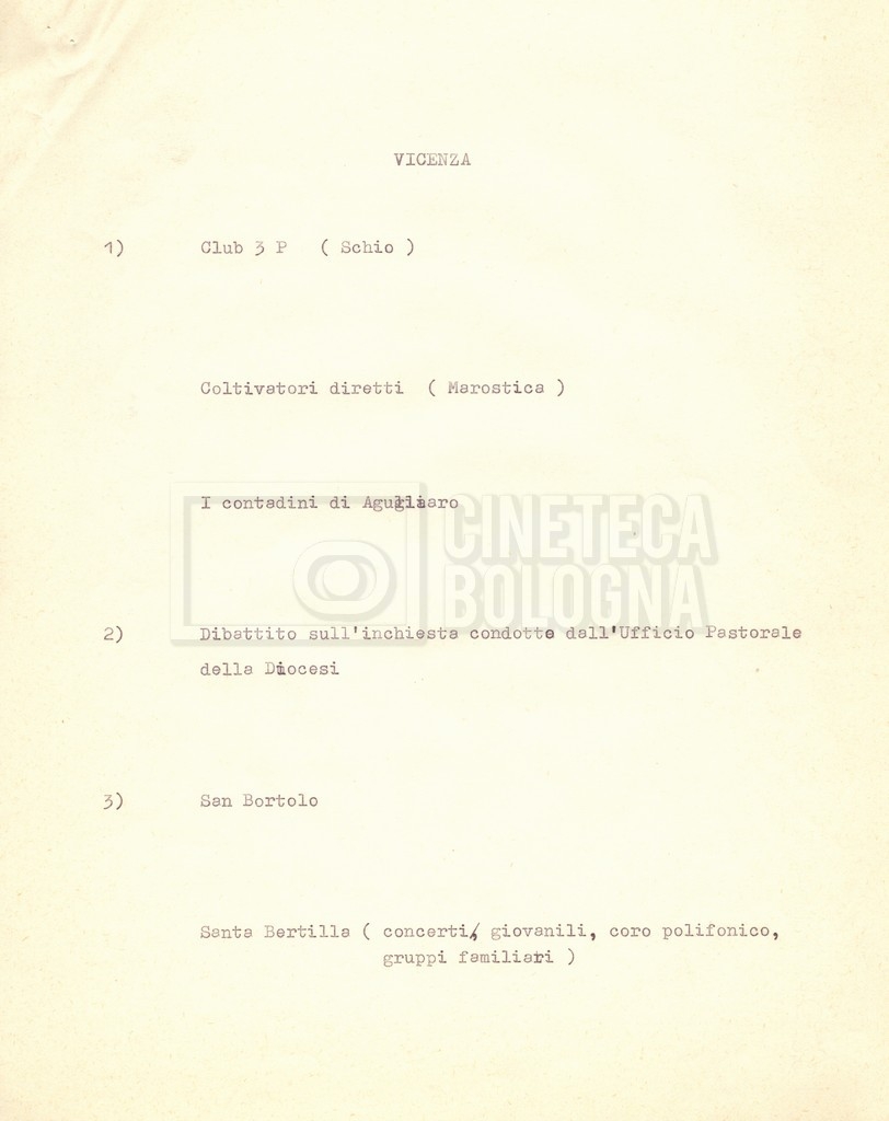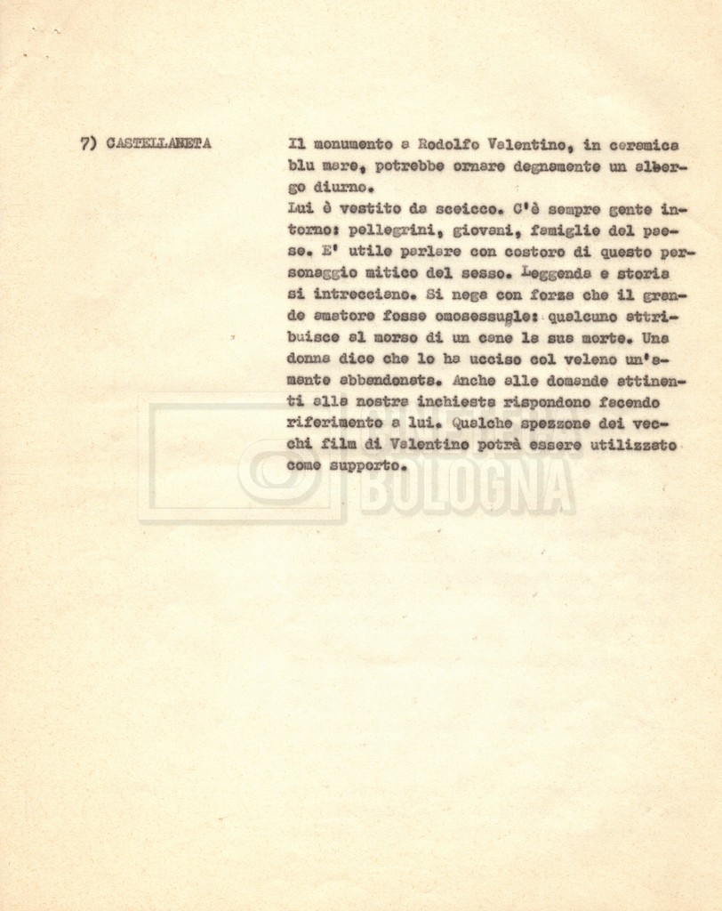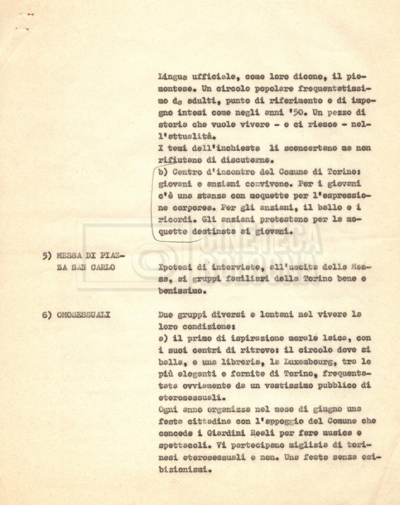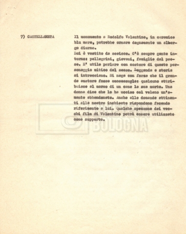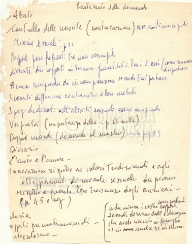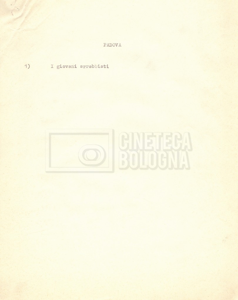 “Appunti sopralluoghi (Prima e seconda versione); prospetti per le riprese al nord, al centro-sud; appunti di Lino Del Fra; piano di lavorazione”
