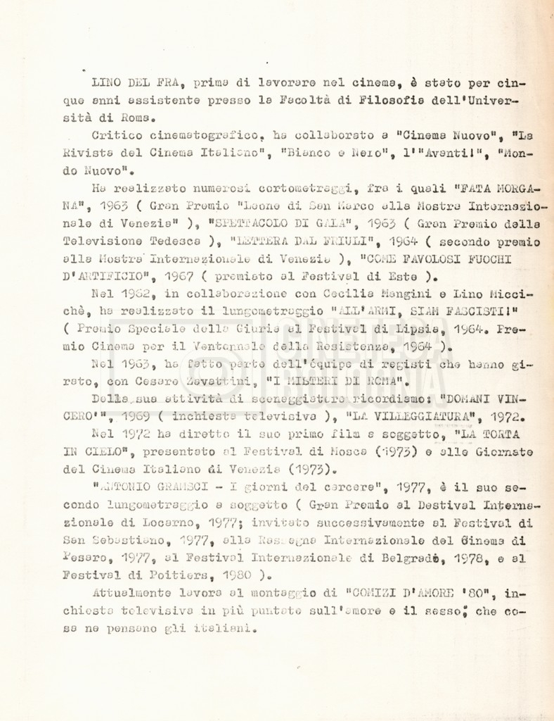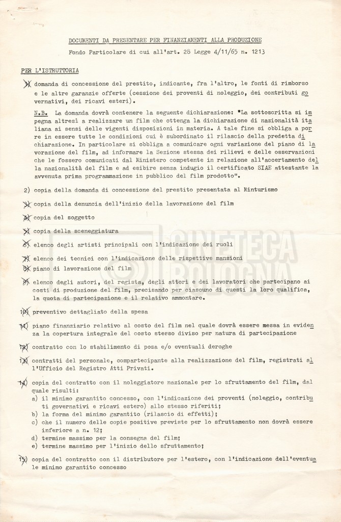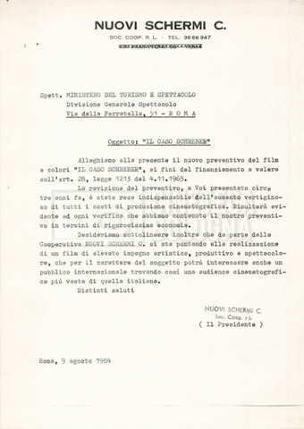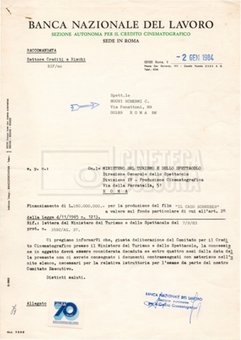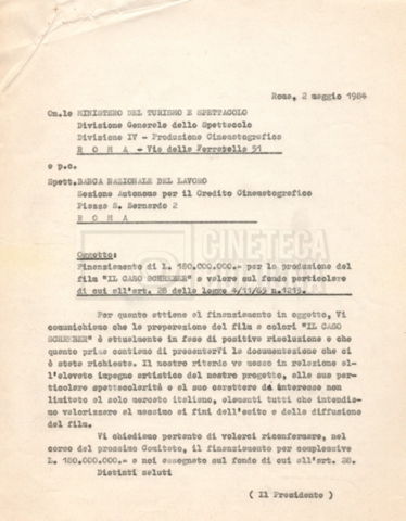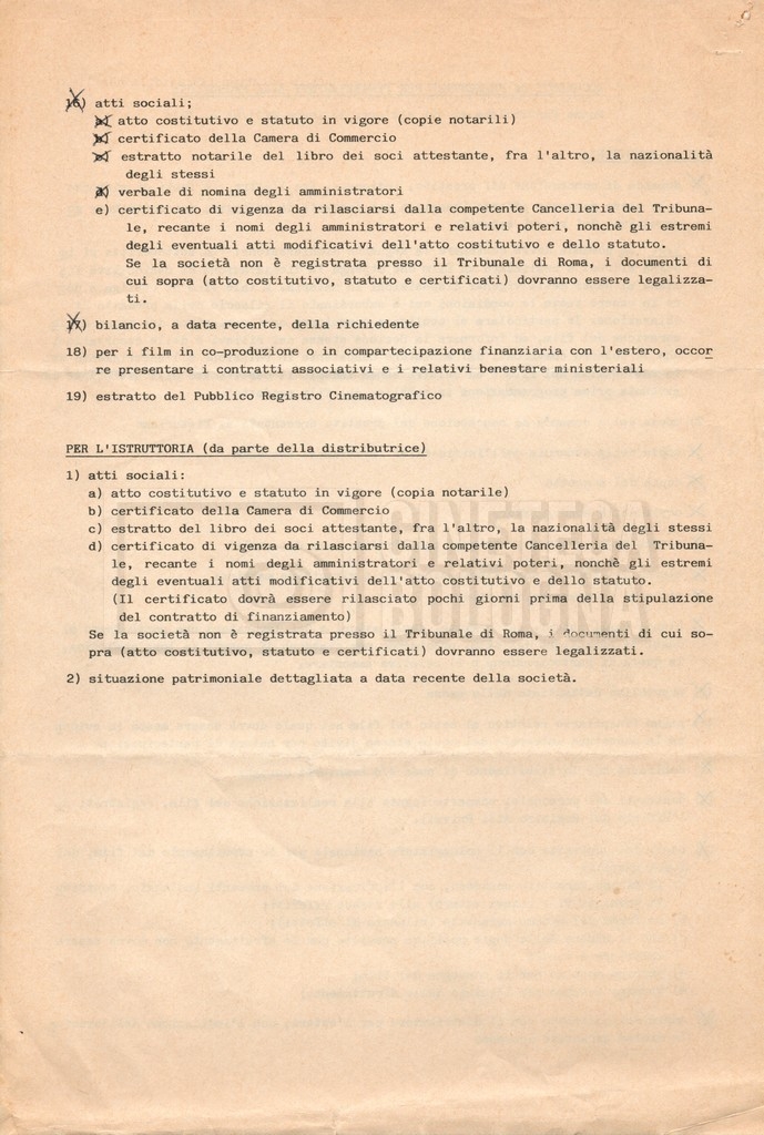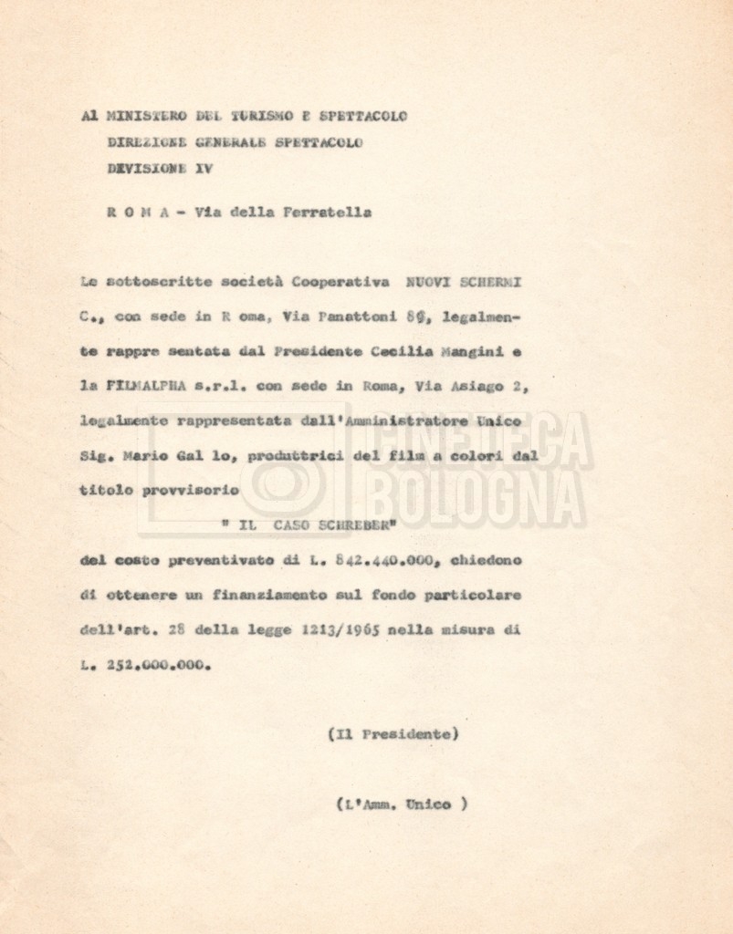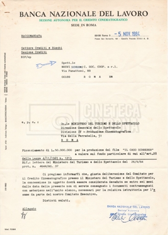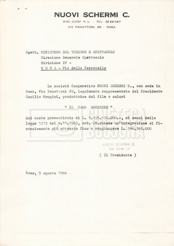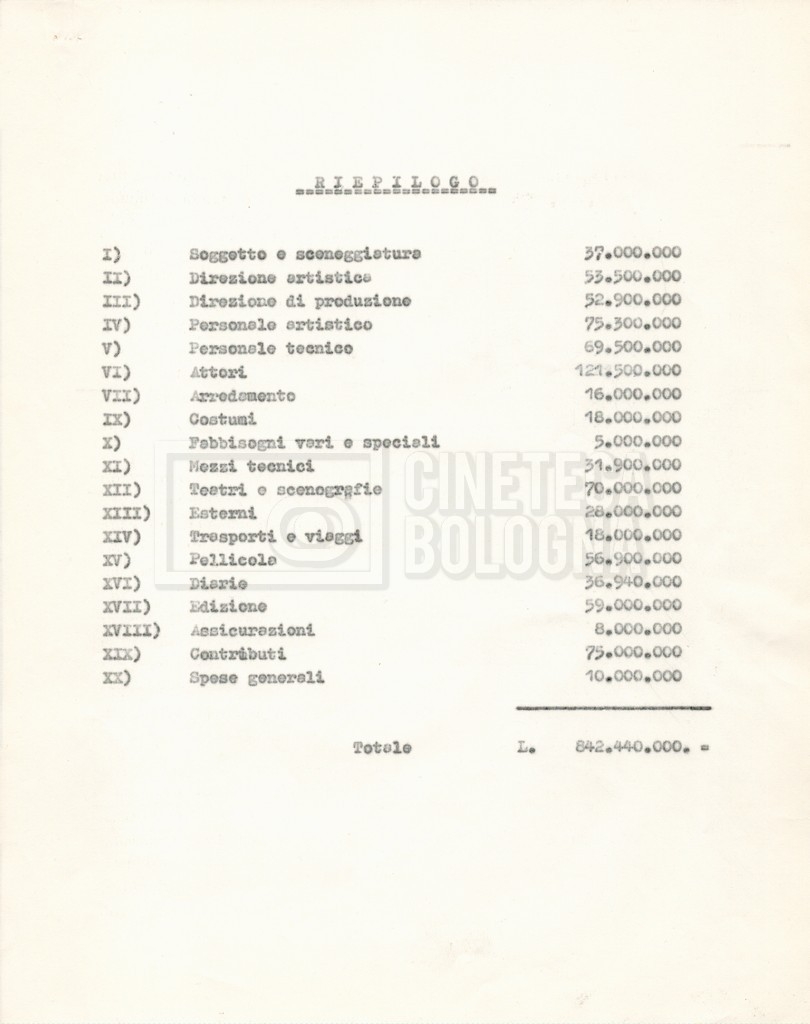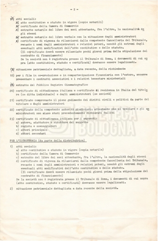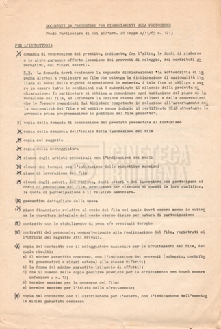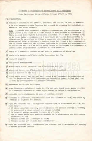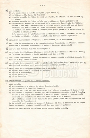 Contiene richieste di finanziamento e pratiche amministrative, in merito alla realizzazione del progetto, con la ‘Banca Nazionale’, il ‘Ministero di turismo e spettacolo’ e la ‘Italnoleggio’.