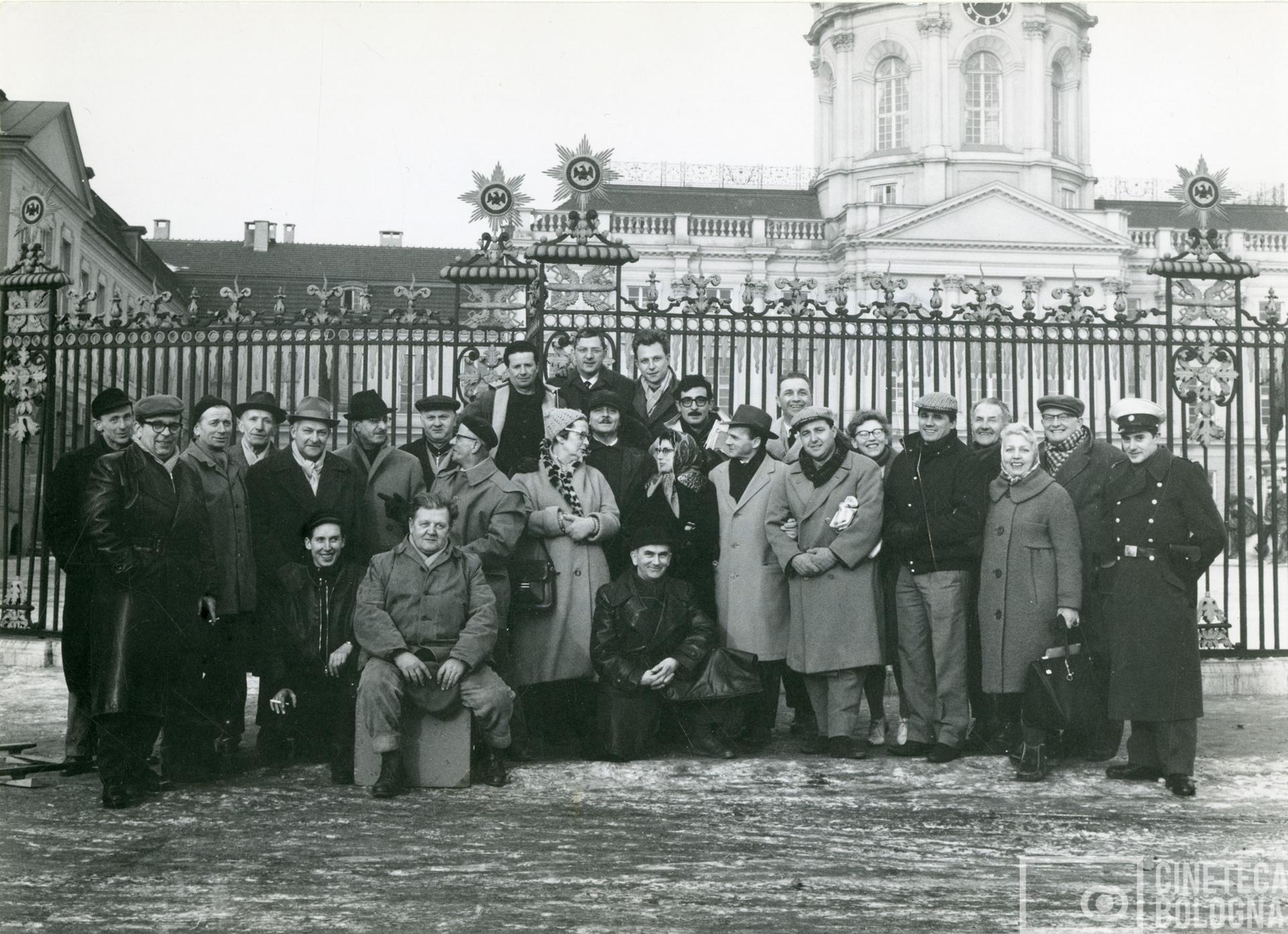 Berlino. Mara Blasetti, Alessandro Blasetti, Tony Brandt e la troupe cinematografica durante le riprese del film Io amo, tu ami…