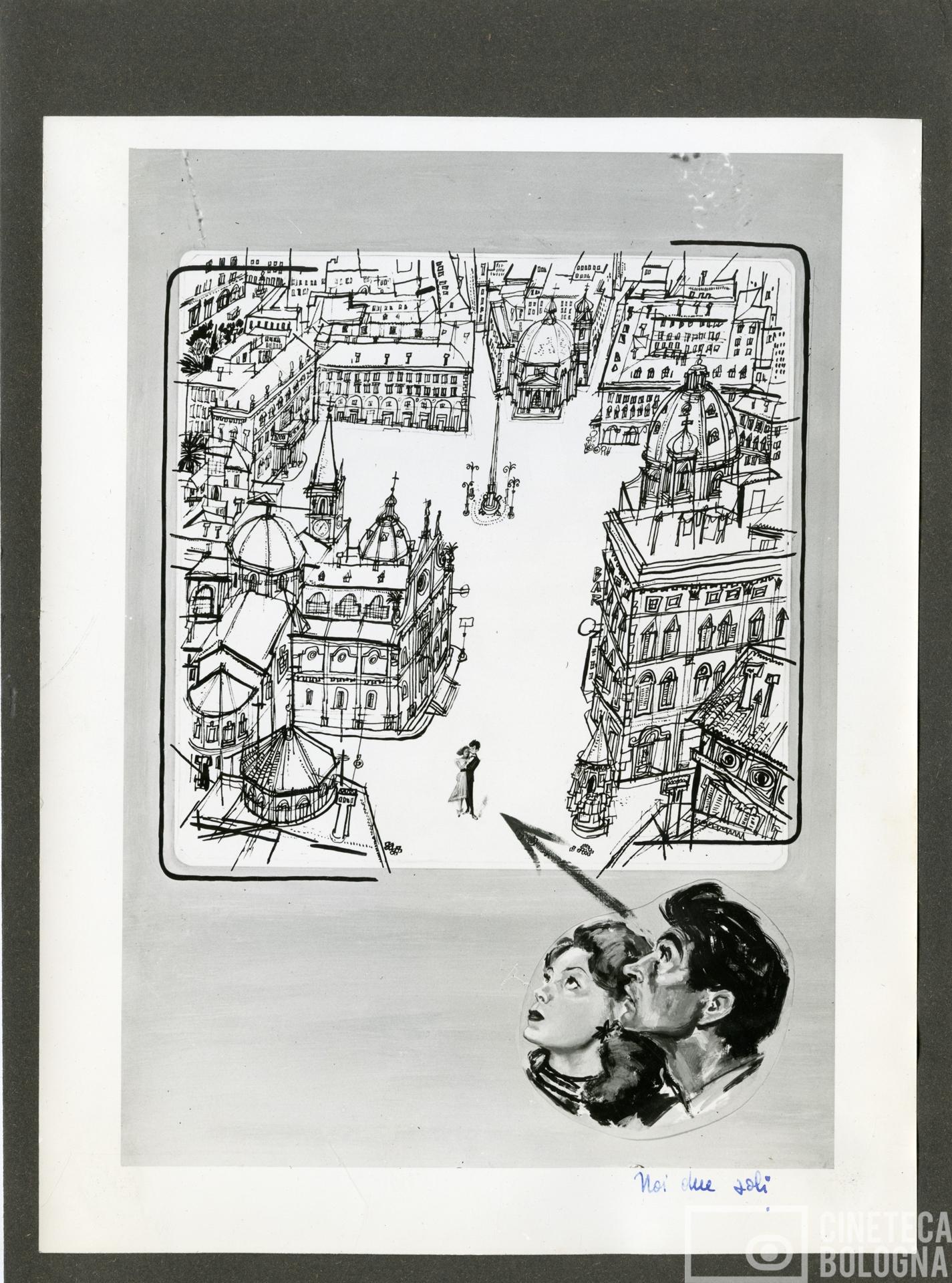 Bozzetto del manifesto del film Noi due soli di Marcello Marchesi, Vittorio Metz e Marino Girolami. 1952