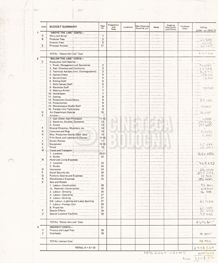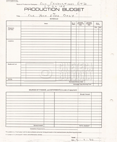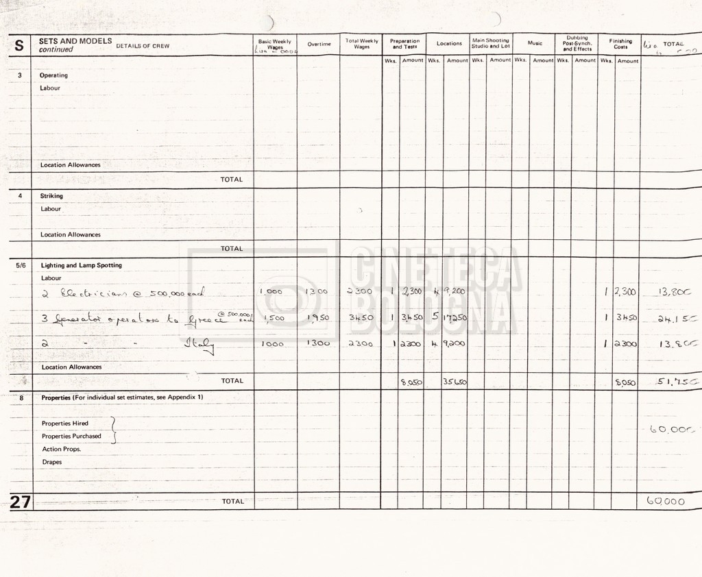 – Un production budget per le riprese in Grecia (16 settembre 1980);