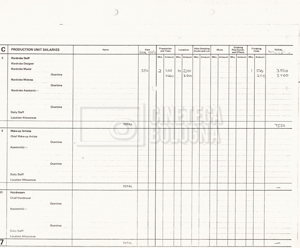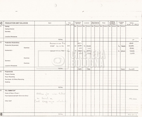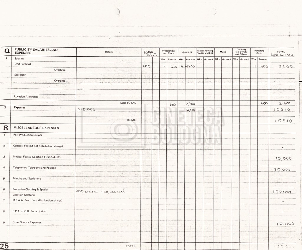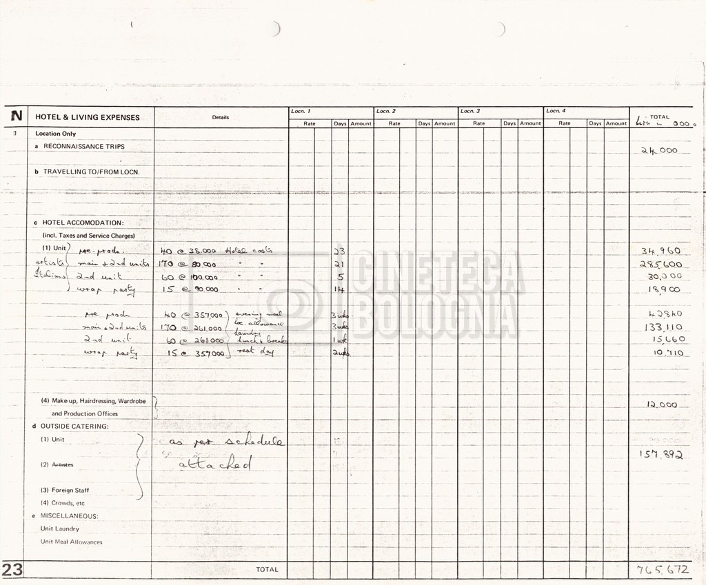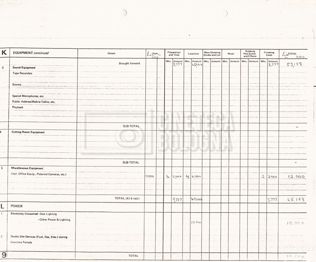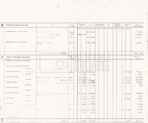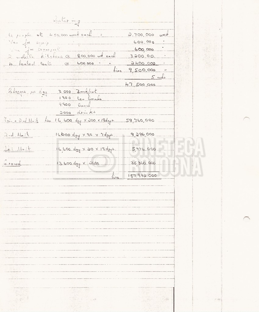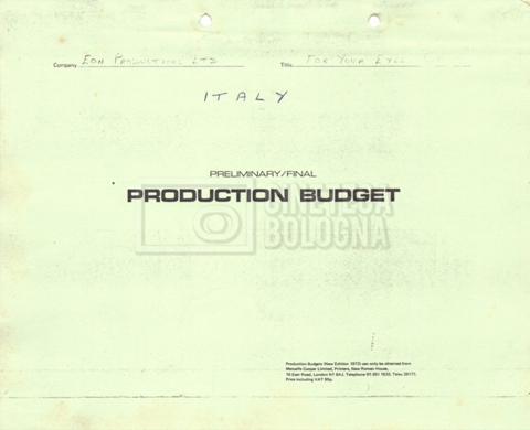 – Due production budget per le riprese in Italia, di cui uno in copia (16 settembre 1980).