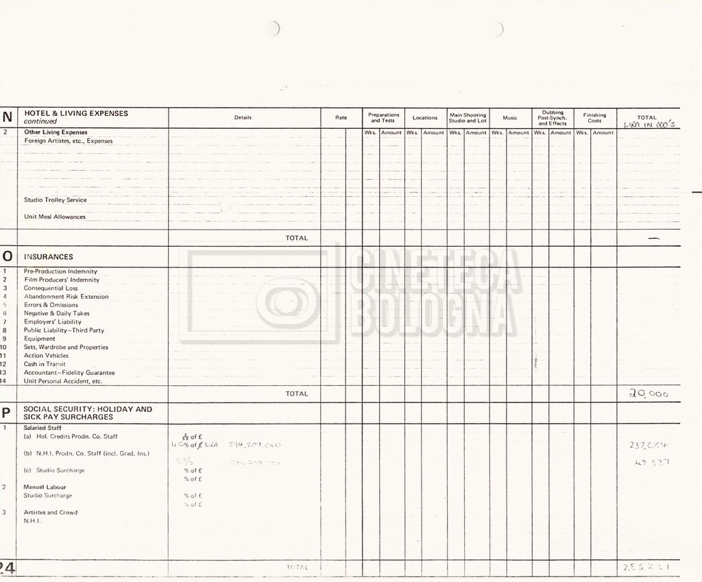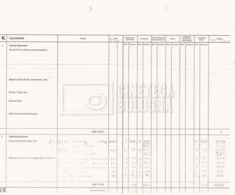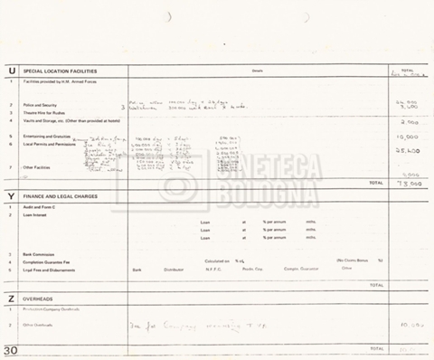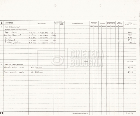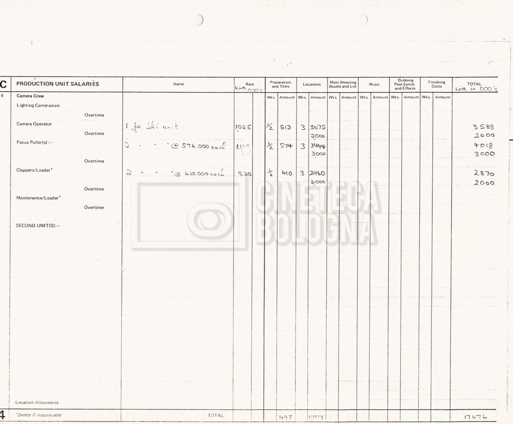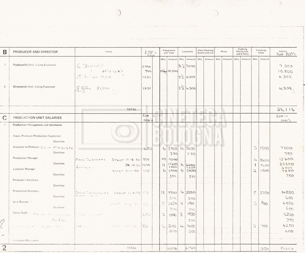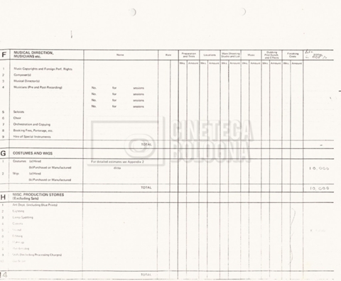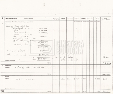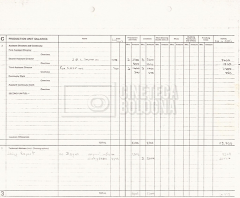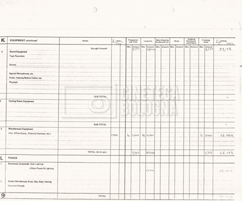 – Due production budget per le riprese in Italia, di cui uno in copia (16 settembre 1980).