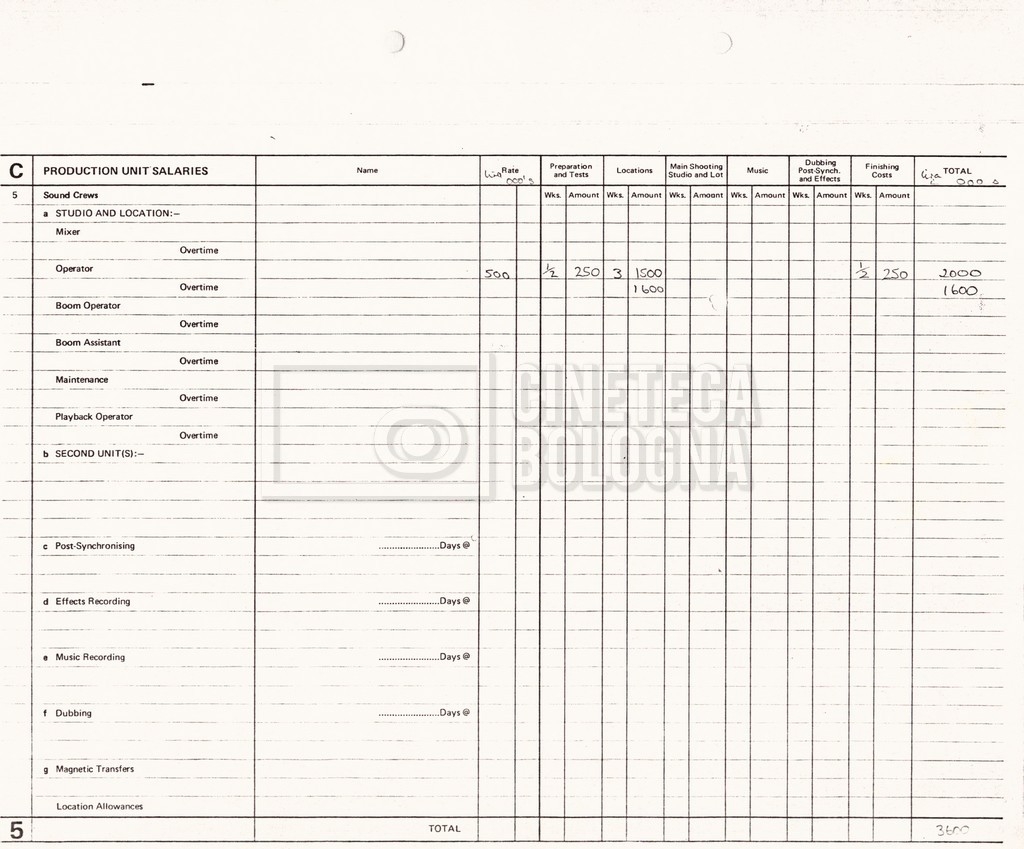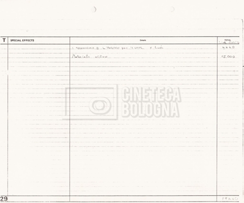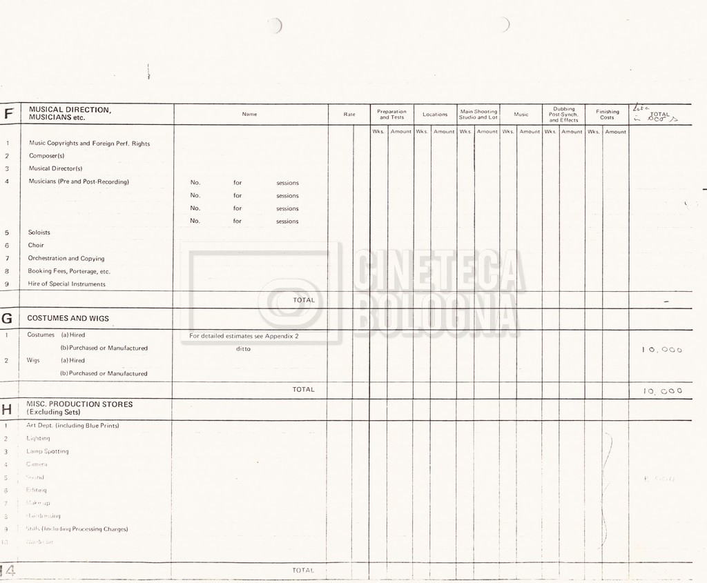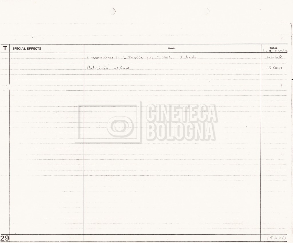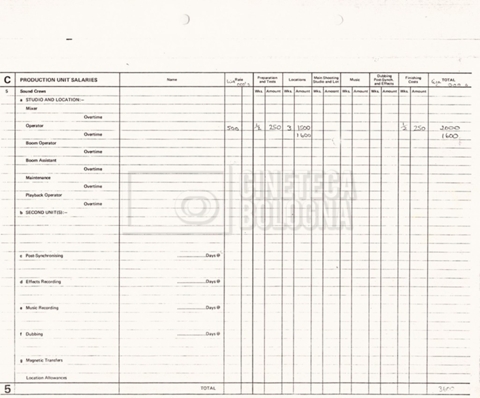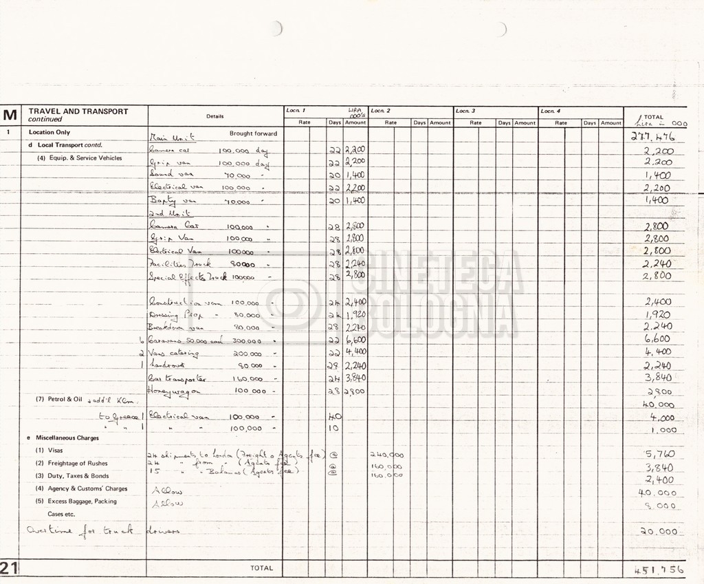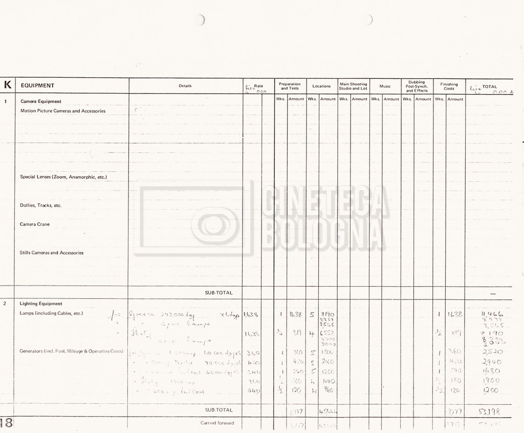 – Due production budget per le riprese in Italia, di cui uno in copia (16 settembre 1980).