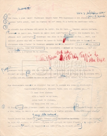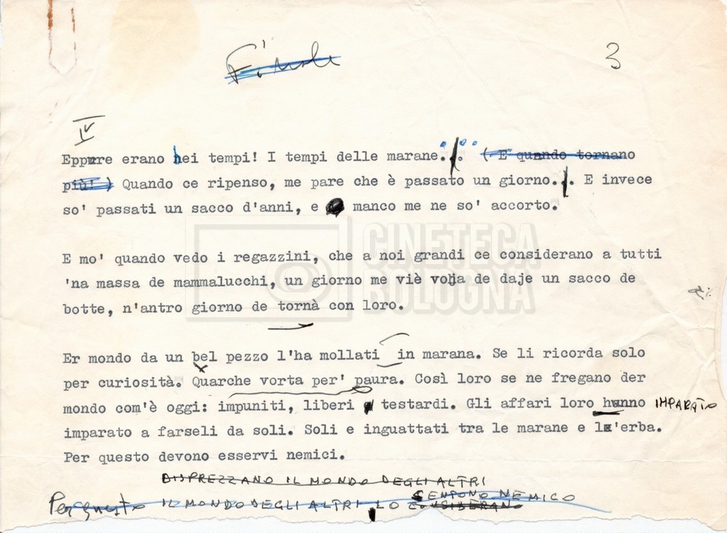 – “Il testo originale di Pasolini con la fine scritta da Lino Del Fra”;