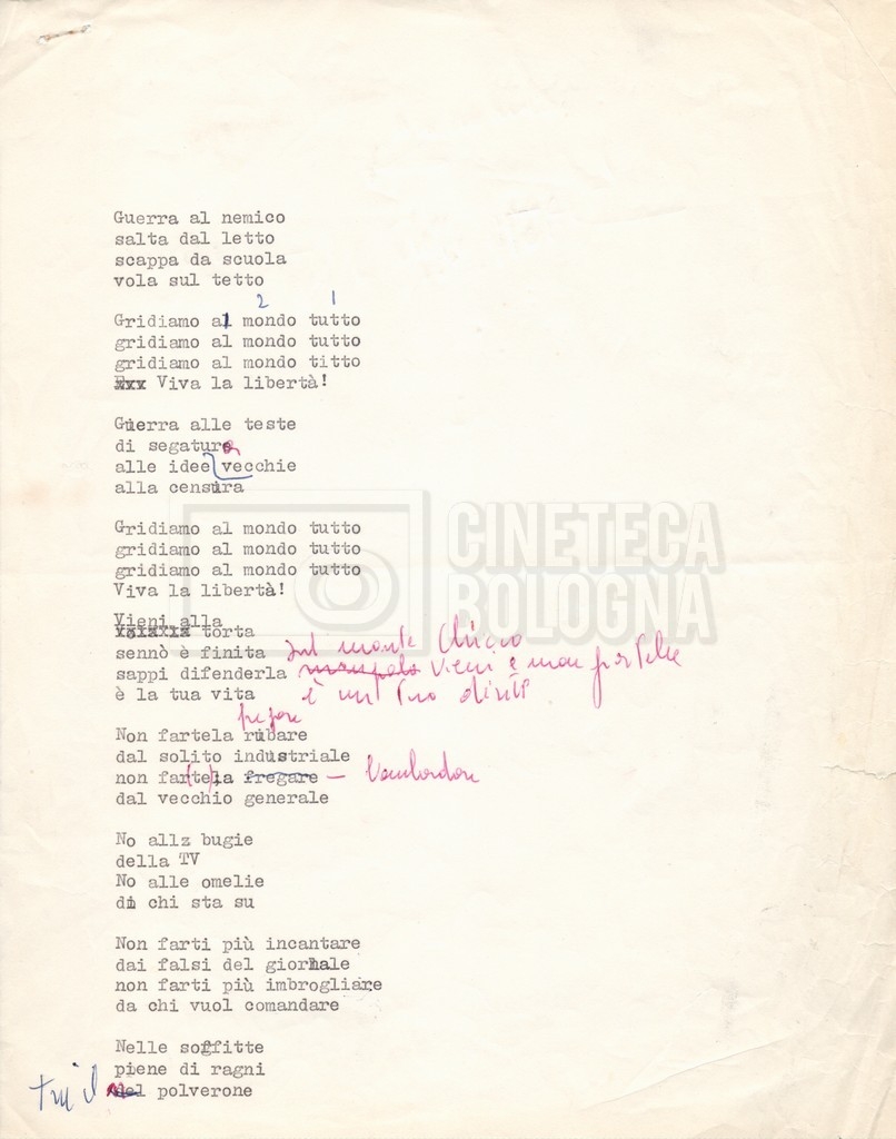 Contiene il testo della “canzone della Saponaia” datt. con appunti mss.