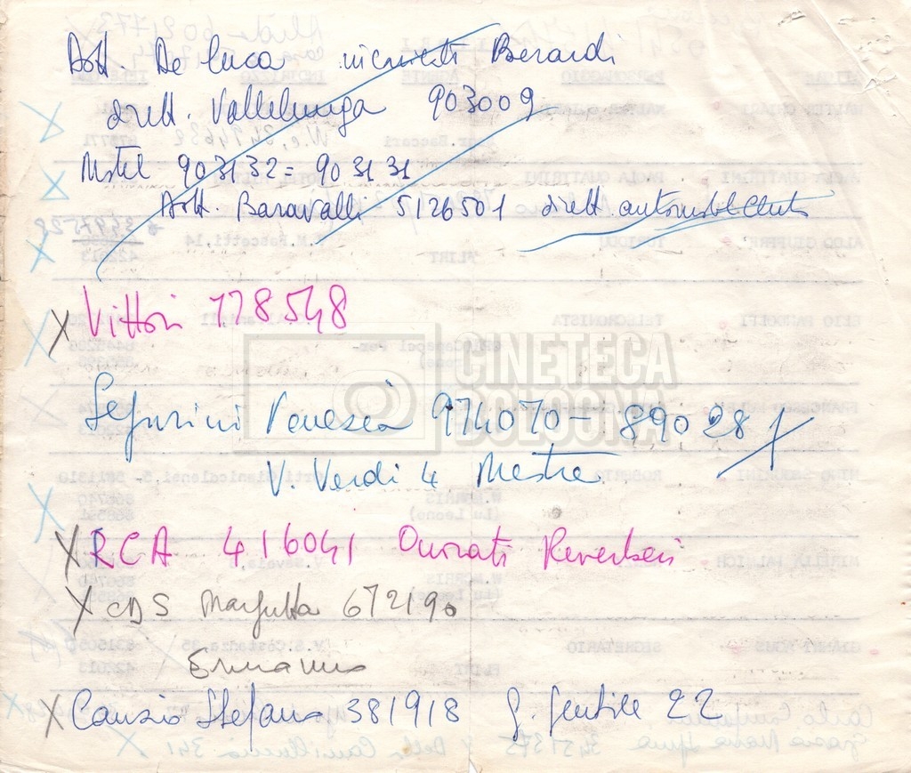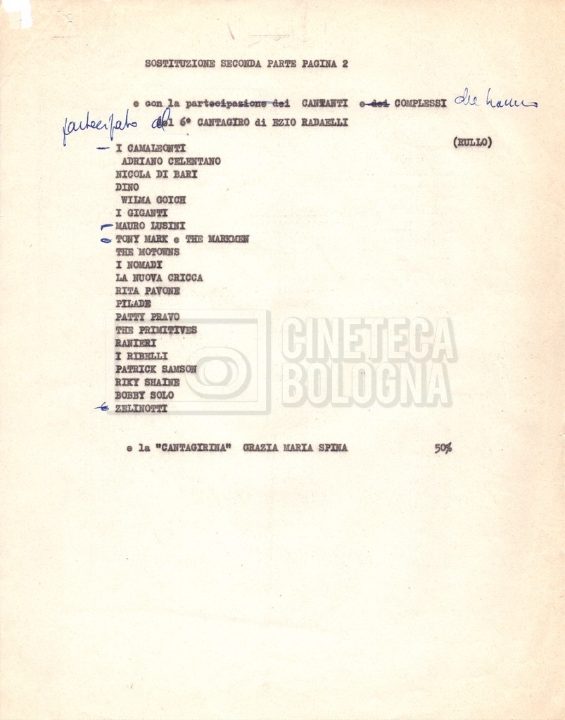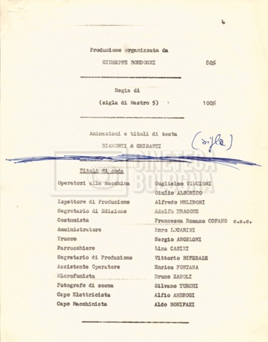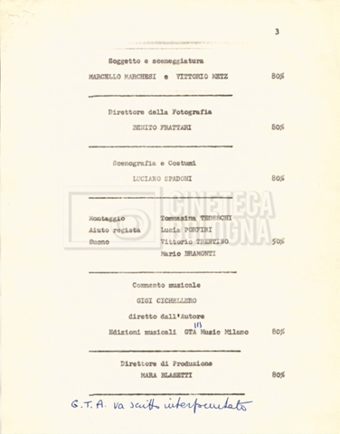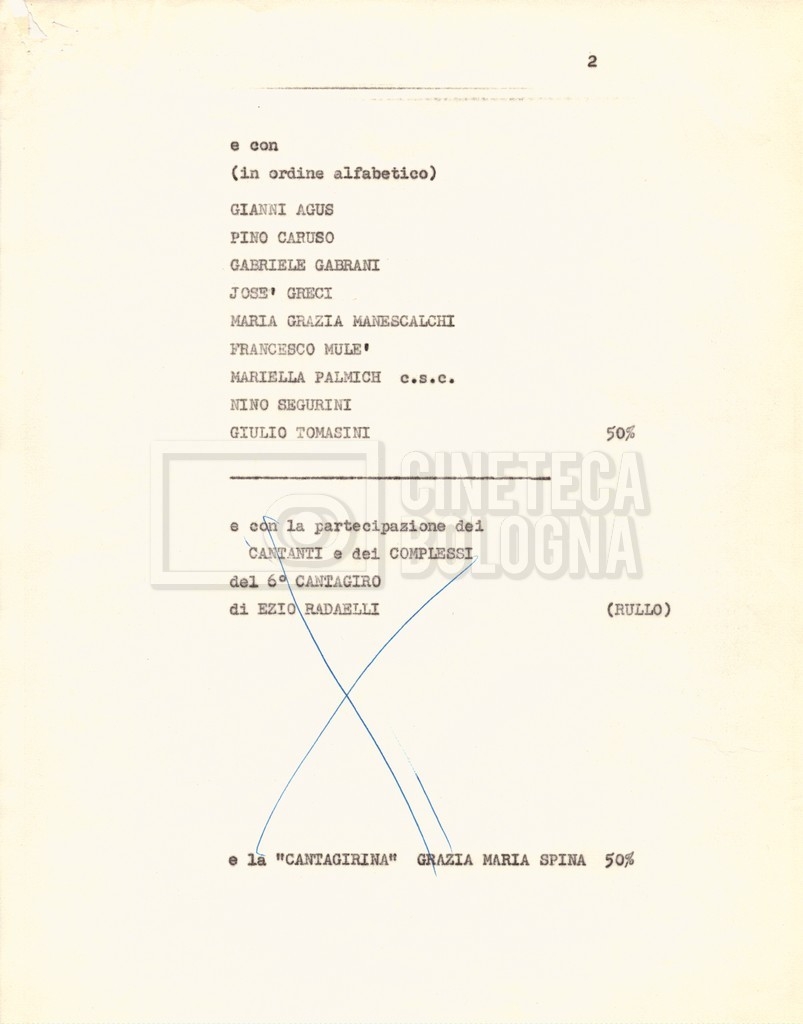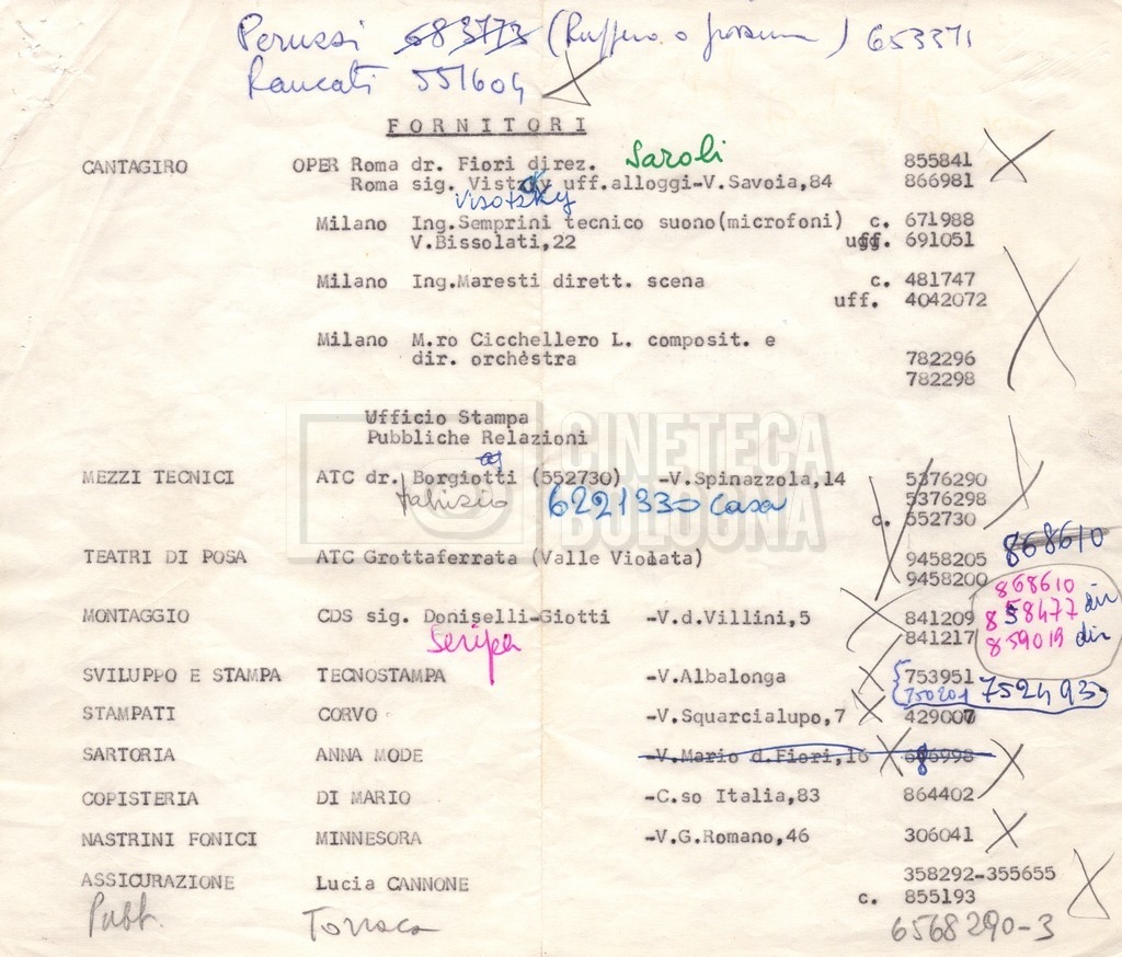 – Elenchi del cast artistico e tecnico, nei quali vengono indicati i recapiti;