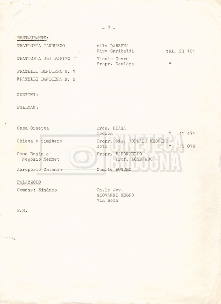 – Una lista di nominativi e recapiti di hotel e servizi, come trasporti e autorità pubbliche, presenti in Sicilia;