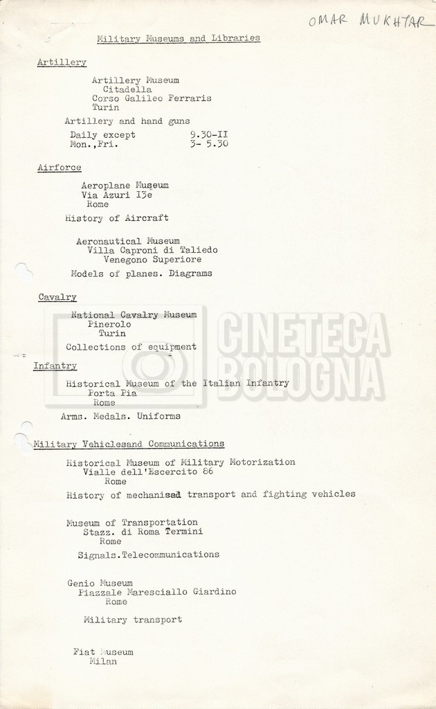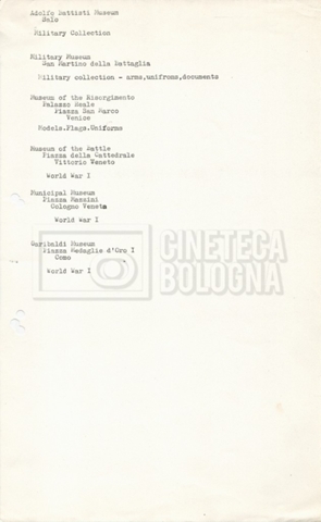 – Un elenco dei musei e della biblioteche militari in Italia;