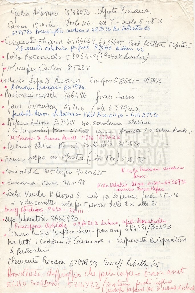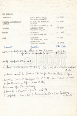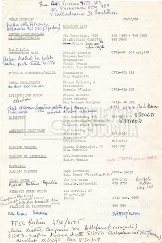 – Un elenco dei fornitori e degli hotel di Roma.