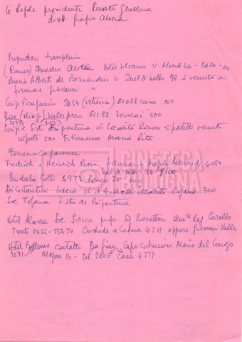 - Una lista dei fornitori a Cortina d'Ampezzo fortemente appuntata;