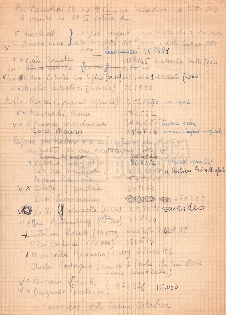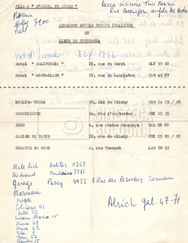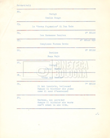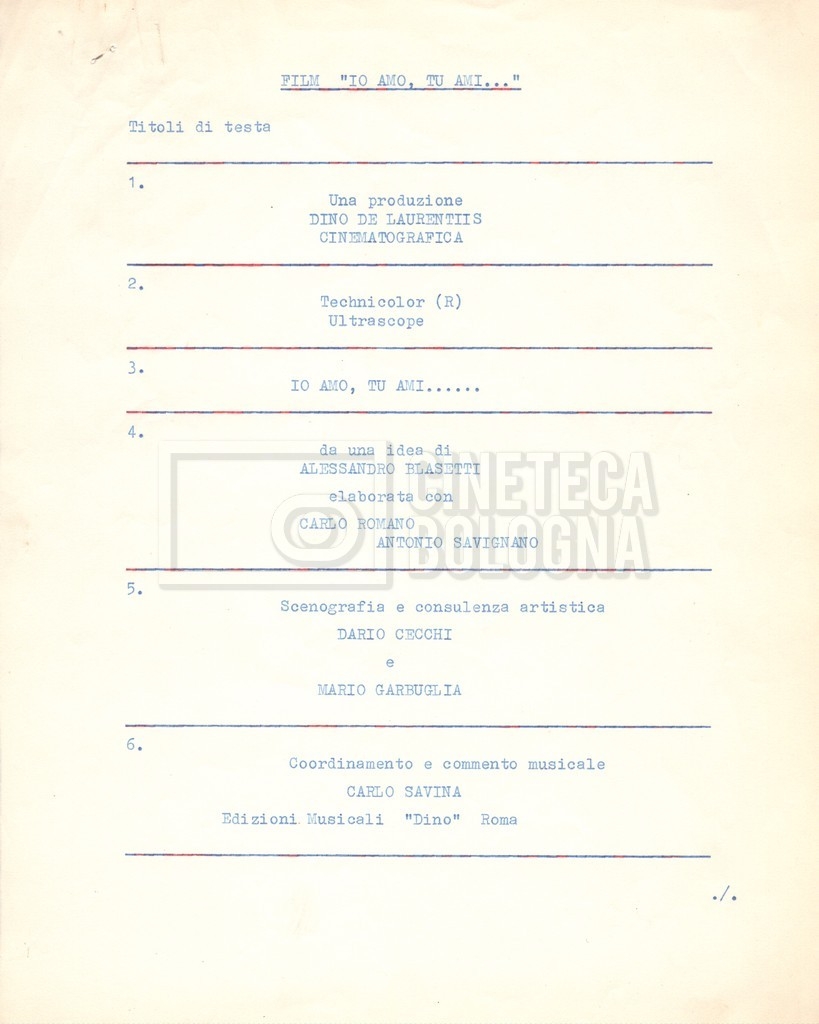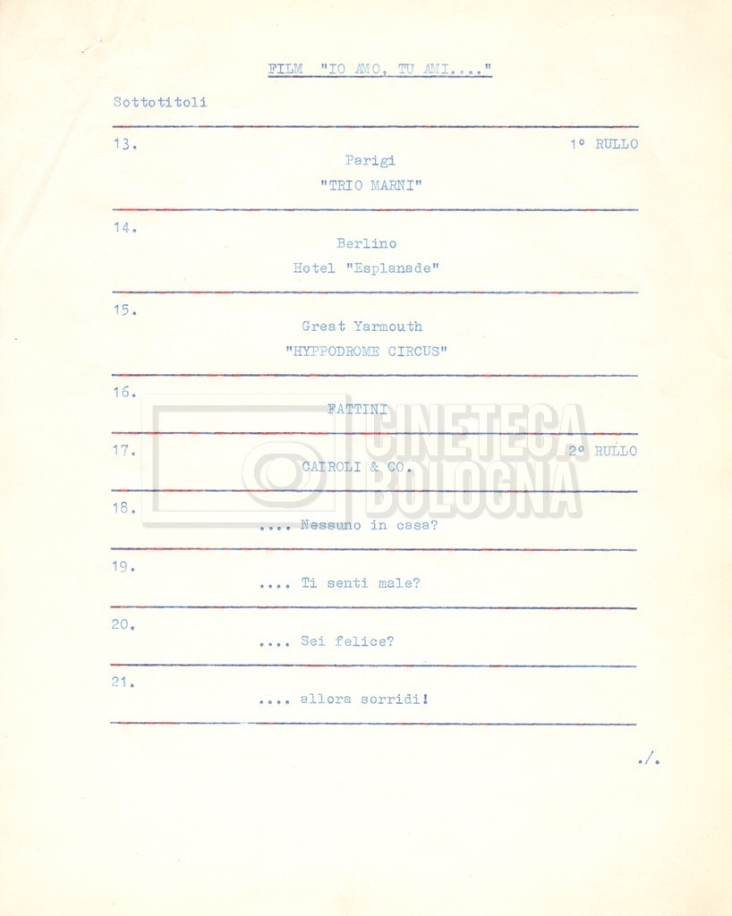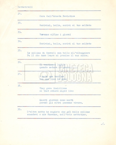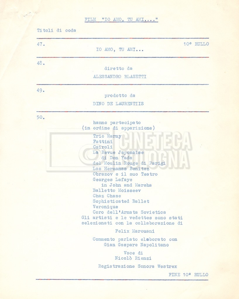 - Diversi appunti mss., tra cui una nota di aggiornamento di Isa Bartalini, aiuto regista.