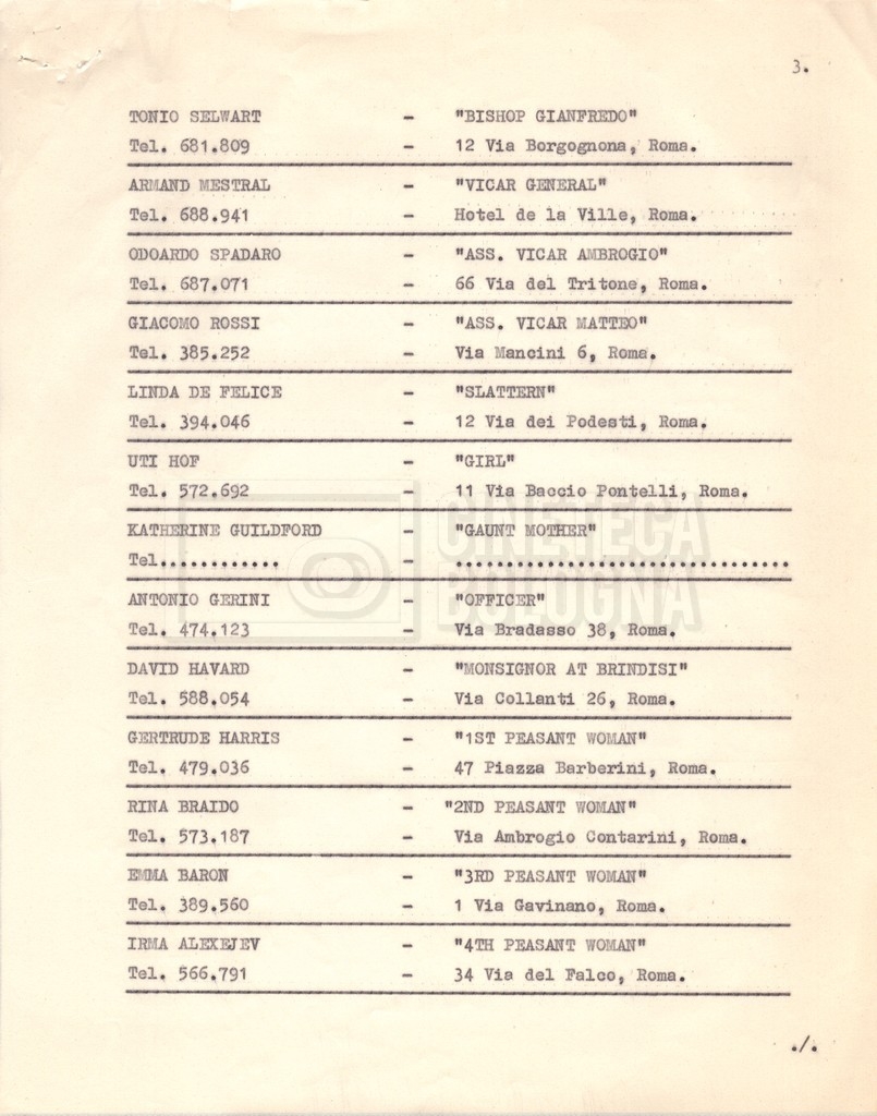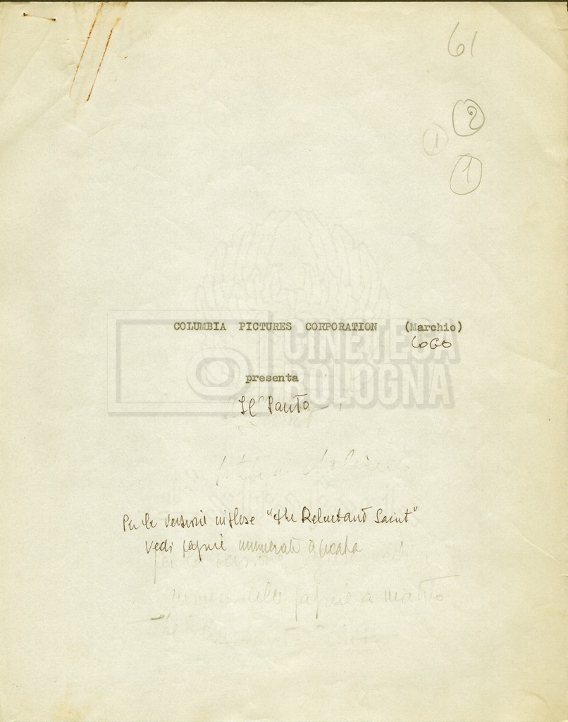 Torna alla banca dati “Cast e unit lists” Documento storico Fondo Mara Blasetti / “Film Mara girati” / The Reluctant Saint Ambiti e contenuto Contiene:- Elenchi del cast artistico e tecnico, con l'indicazione dei recapiti;- I titoli di testa e di coda. Informazioni archivistiche Cronologia: 1961 Numero di ordinamento definitivo: 1.7.1 Numero di ordinamento provvisorio: 4.1.A Descrizione fisica: fascicolo Immagini digitalizzate Informazioni sul film titolo originale: The Reluctant Saint altri titoli: Cronache di un convento regia: Dmytryk, Edward anno: 1962 paese di produzione: Stati Uniti - Italia lingua principale: inglese Documenti correlati Vai alla banca dati