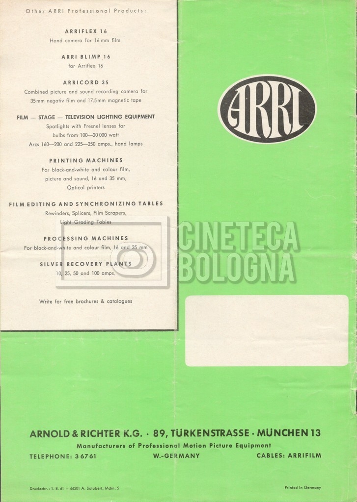 – Una brochure della macchina da presa Arriflex 35 II B [1960];