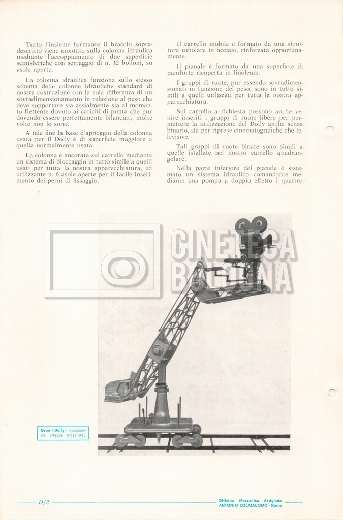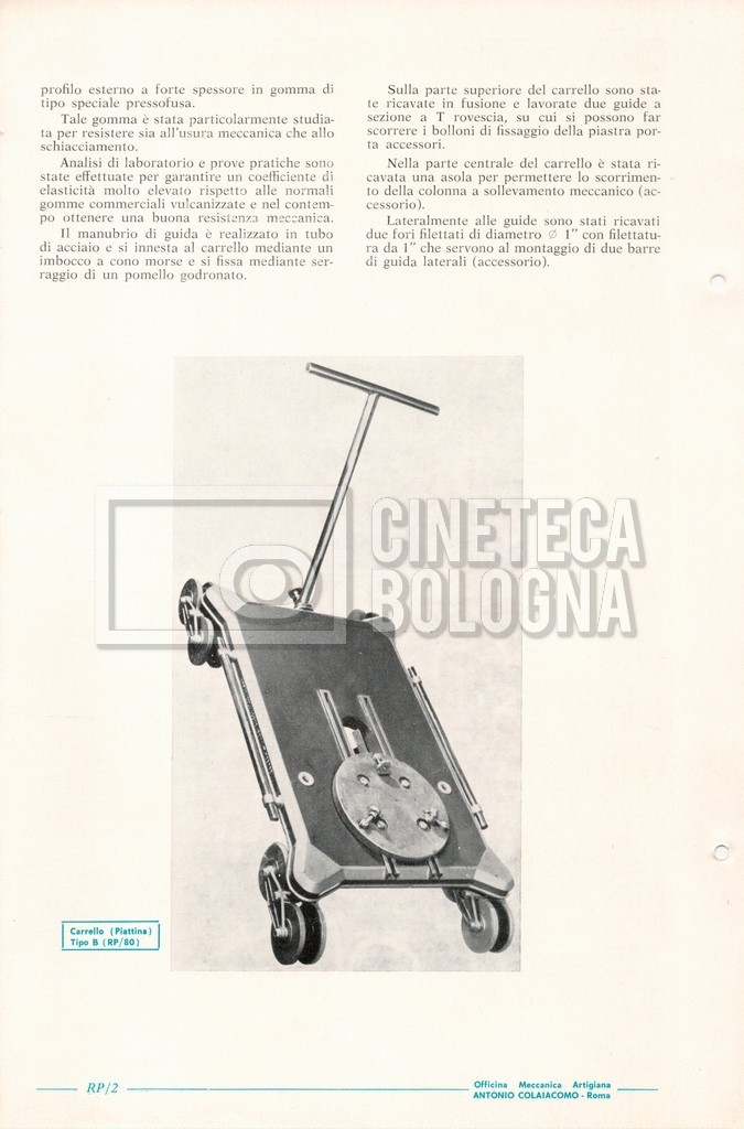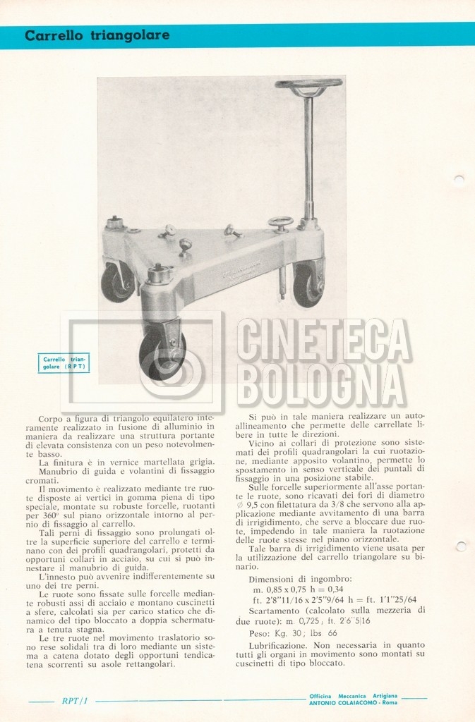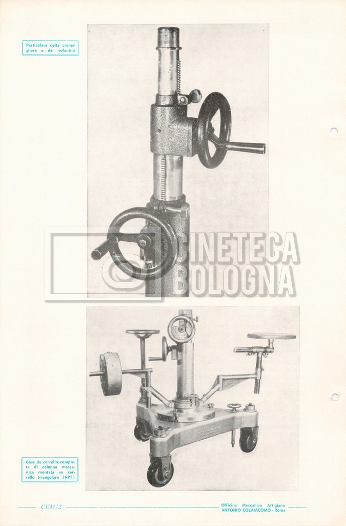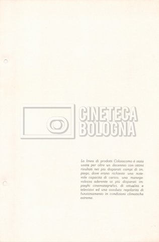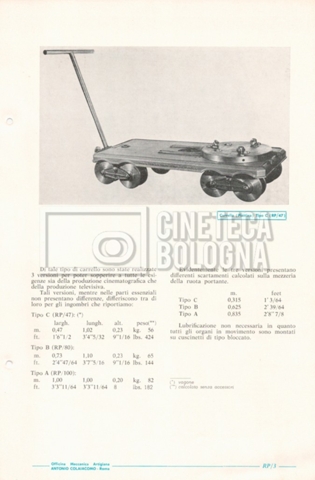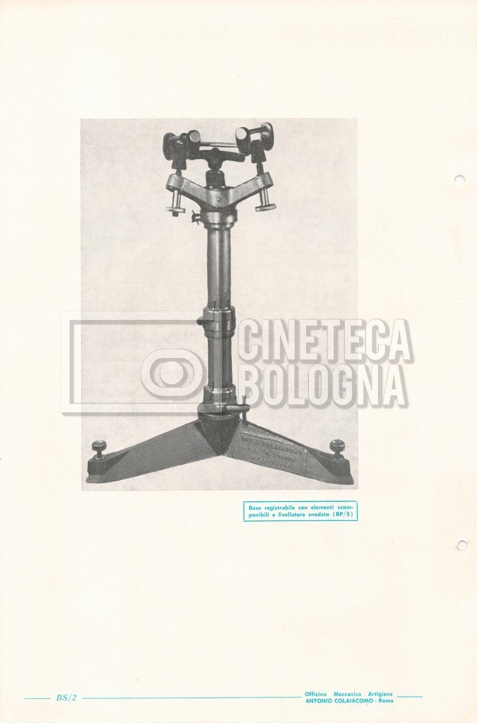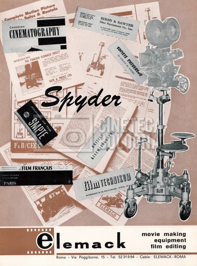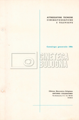– Un catalogo generale delle attrezzature tecniche cinematografiche e televisive dell’officina meccanica artigiana ‘Antonio Colaiacomo’ (1964);