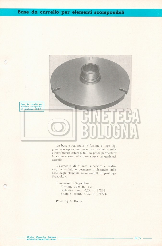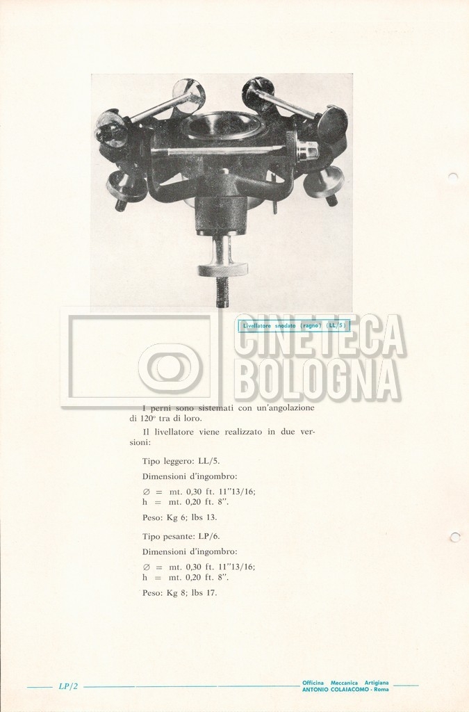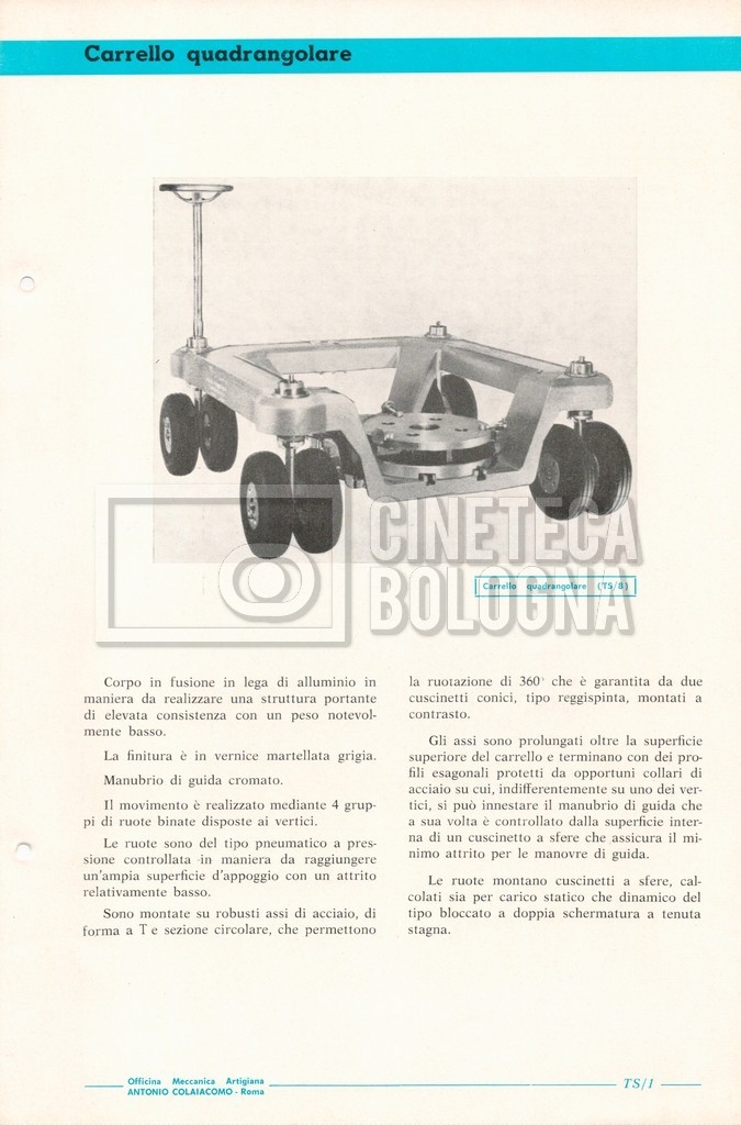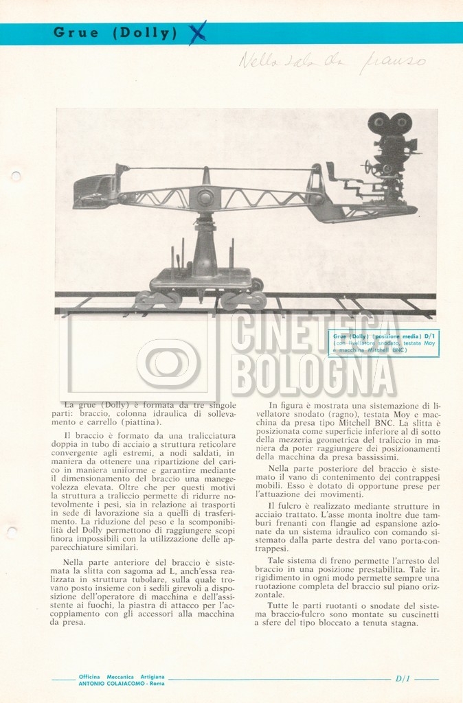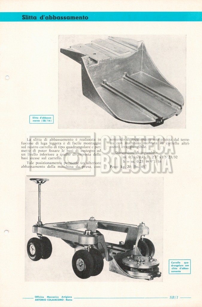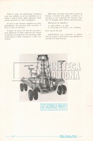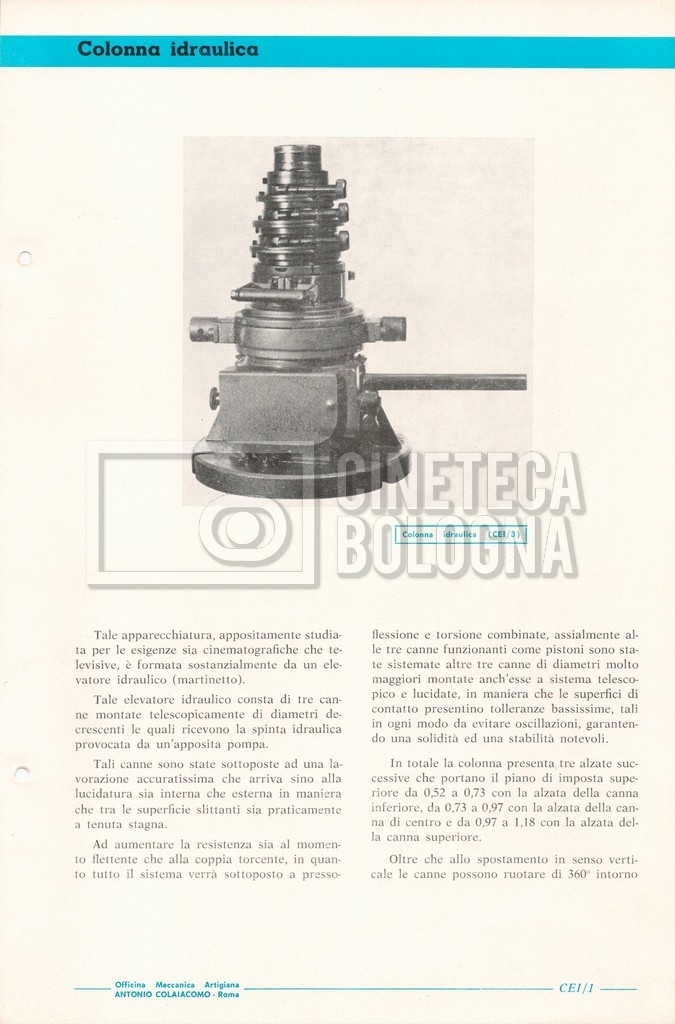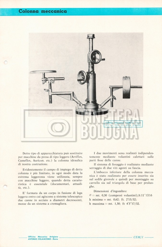 – Un catalogo generale delle attrezzature tecniche cinematografiche e televisive dell’officina meccanica artigiana ‘Antonio Colaiacomo’ (1964);