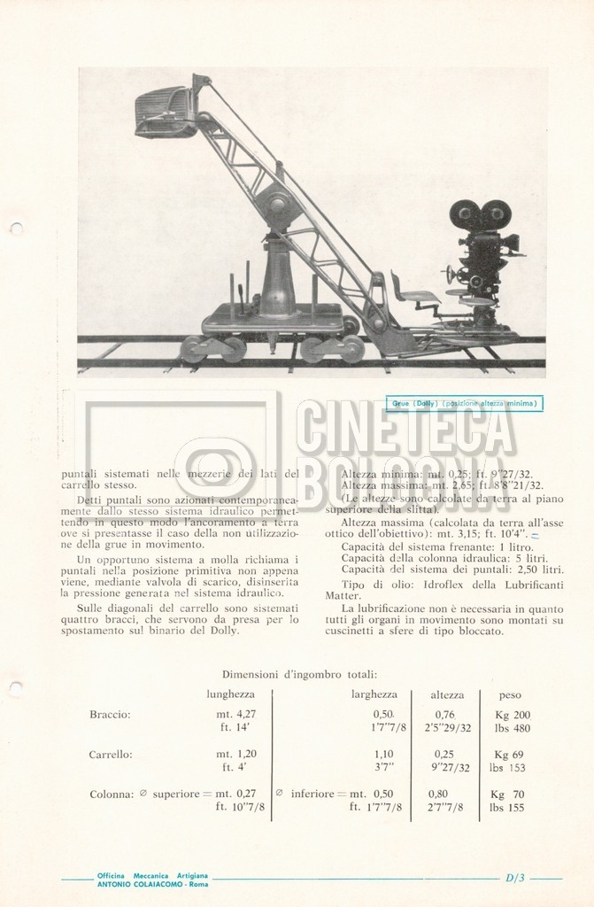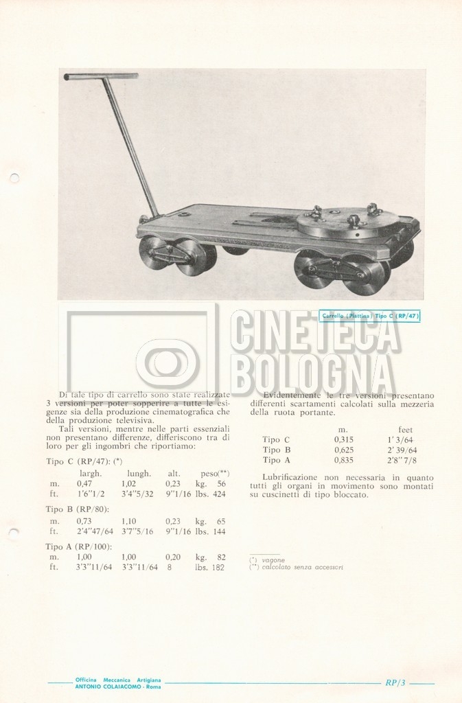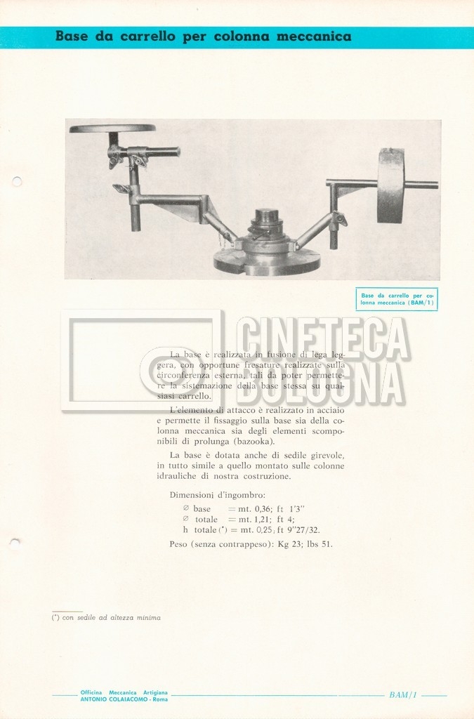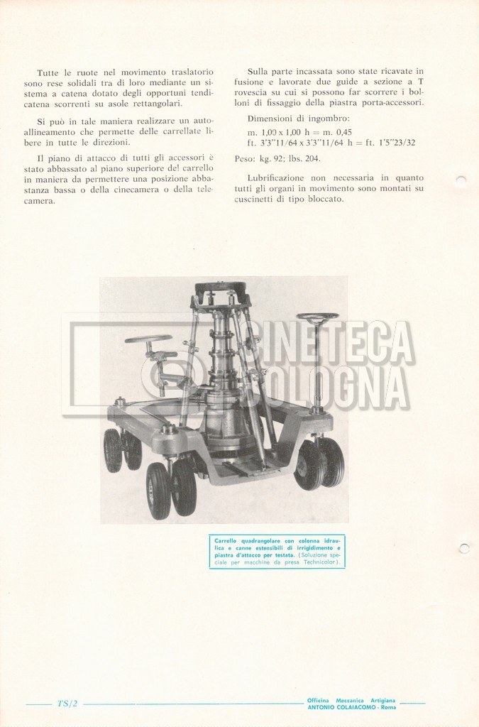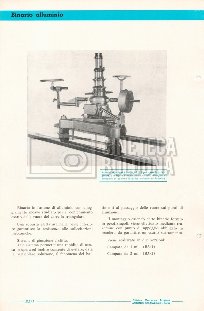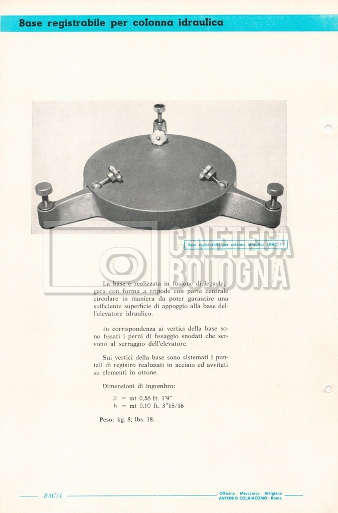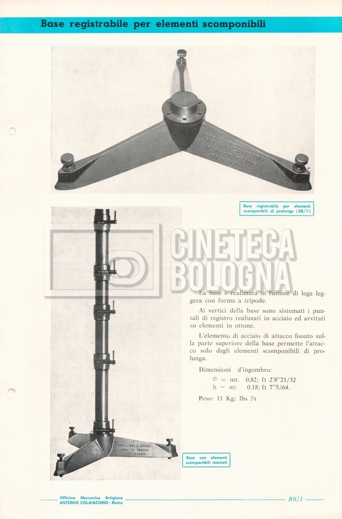 – Un catalogo generale delle attrezzature tecniche cinematografiche e televisive dell’officina meccanica artigiana ‘Antonio Colaiacomo’ (1964);