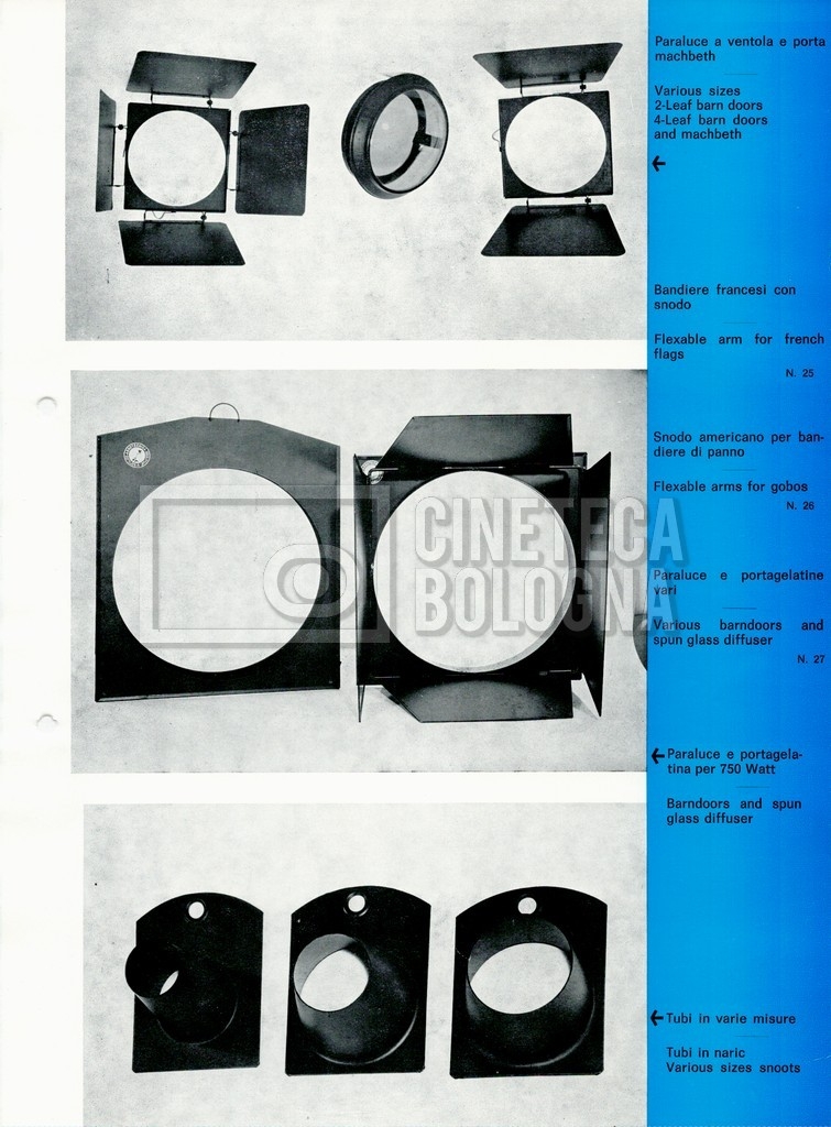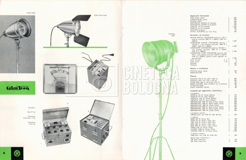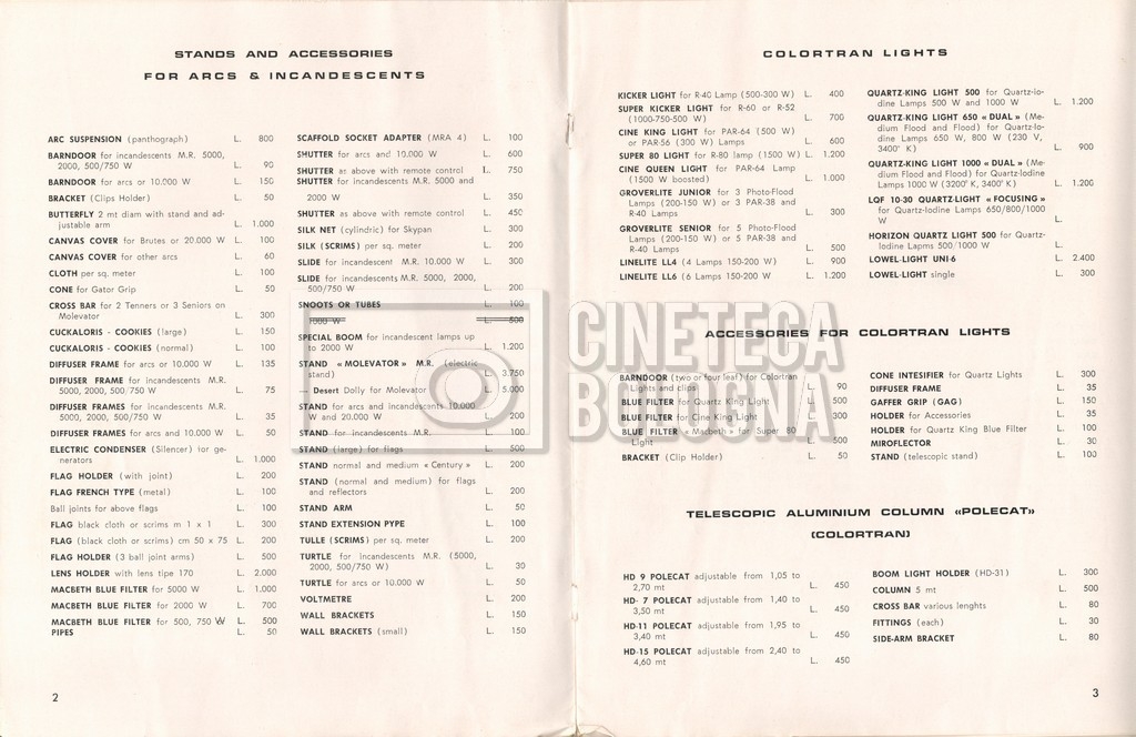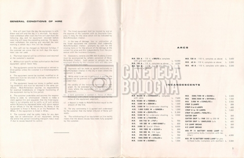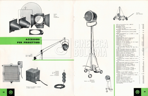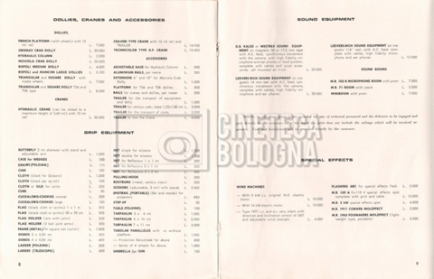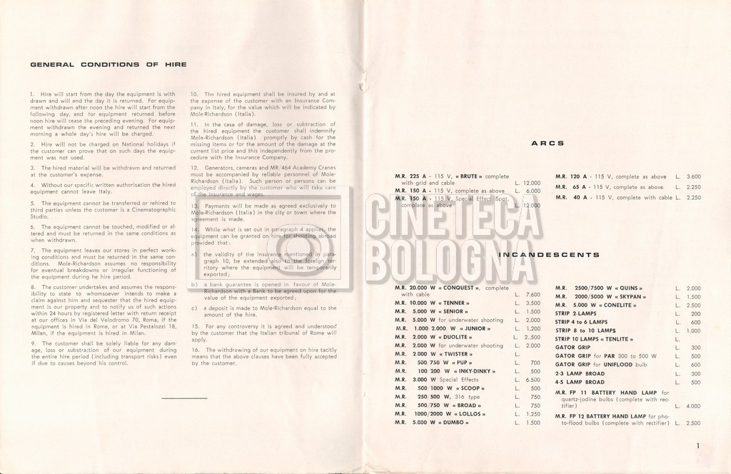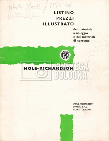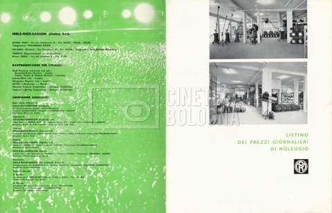 – Un listino prezzi illustrato di materiale a noleggio e di consumo ‘Mole-Richardson’ [1964];