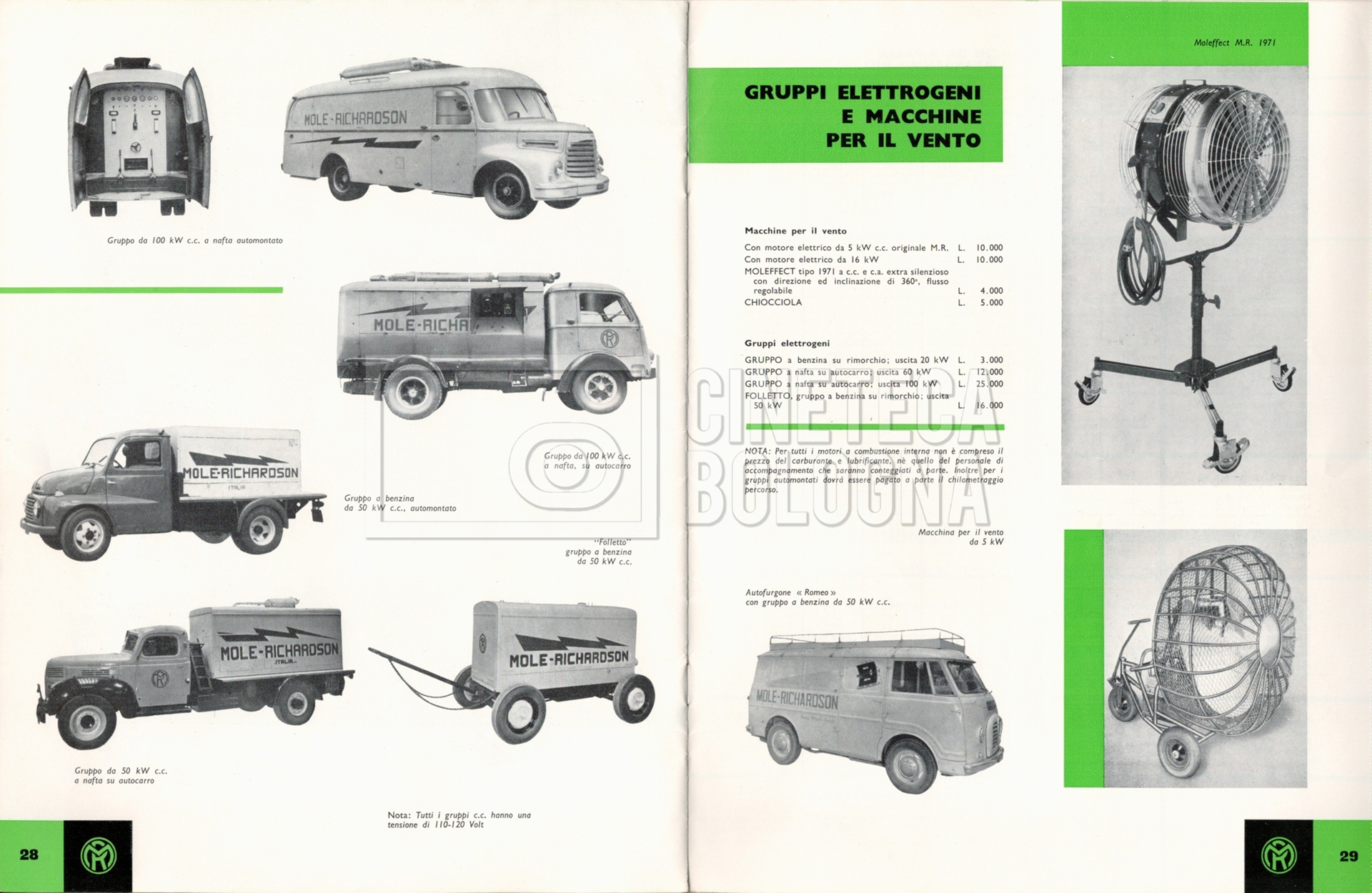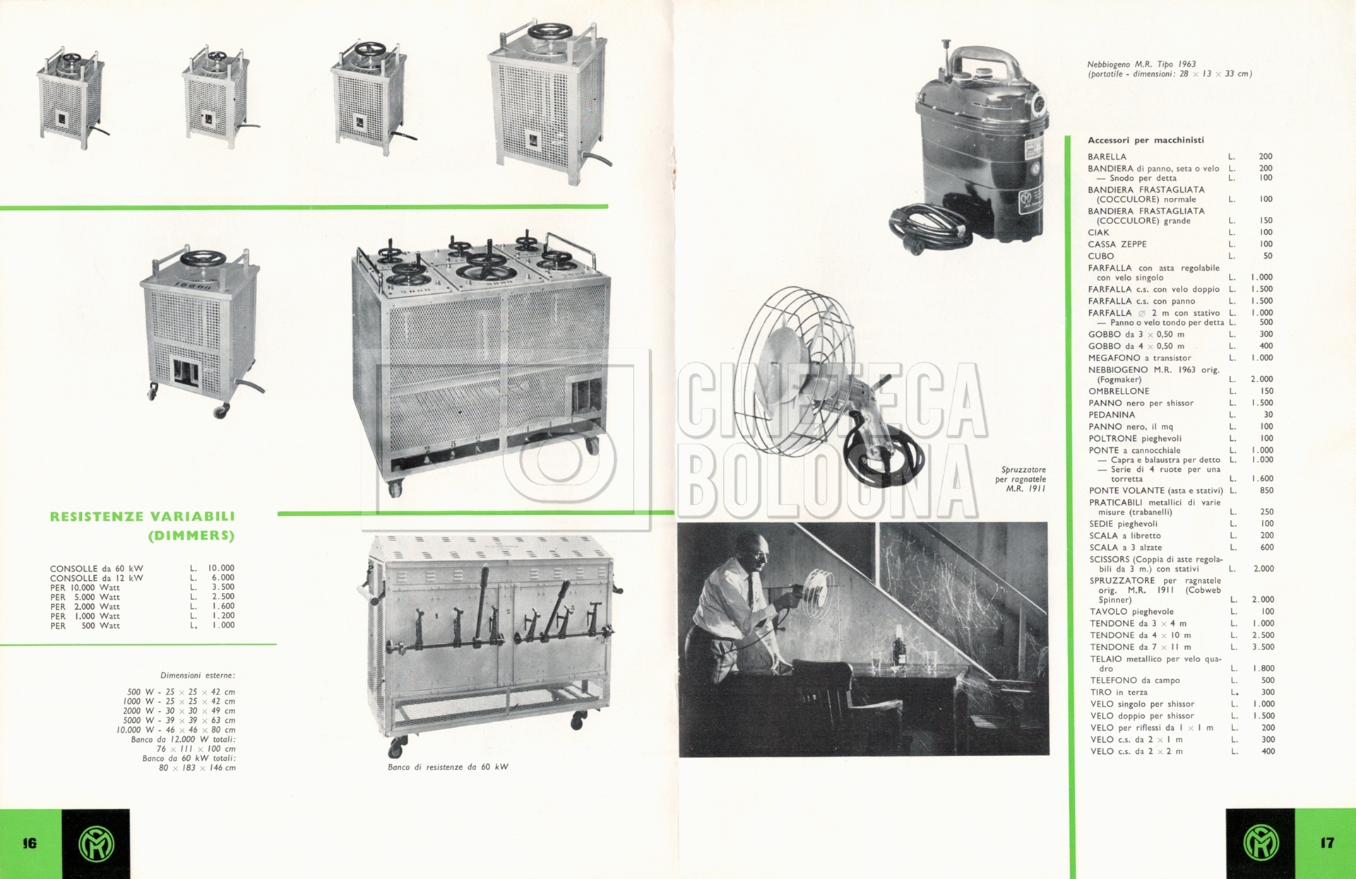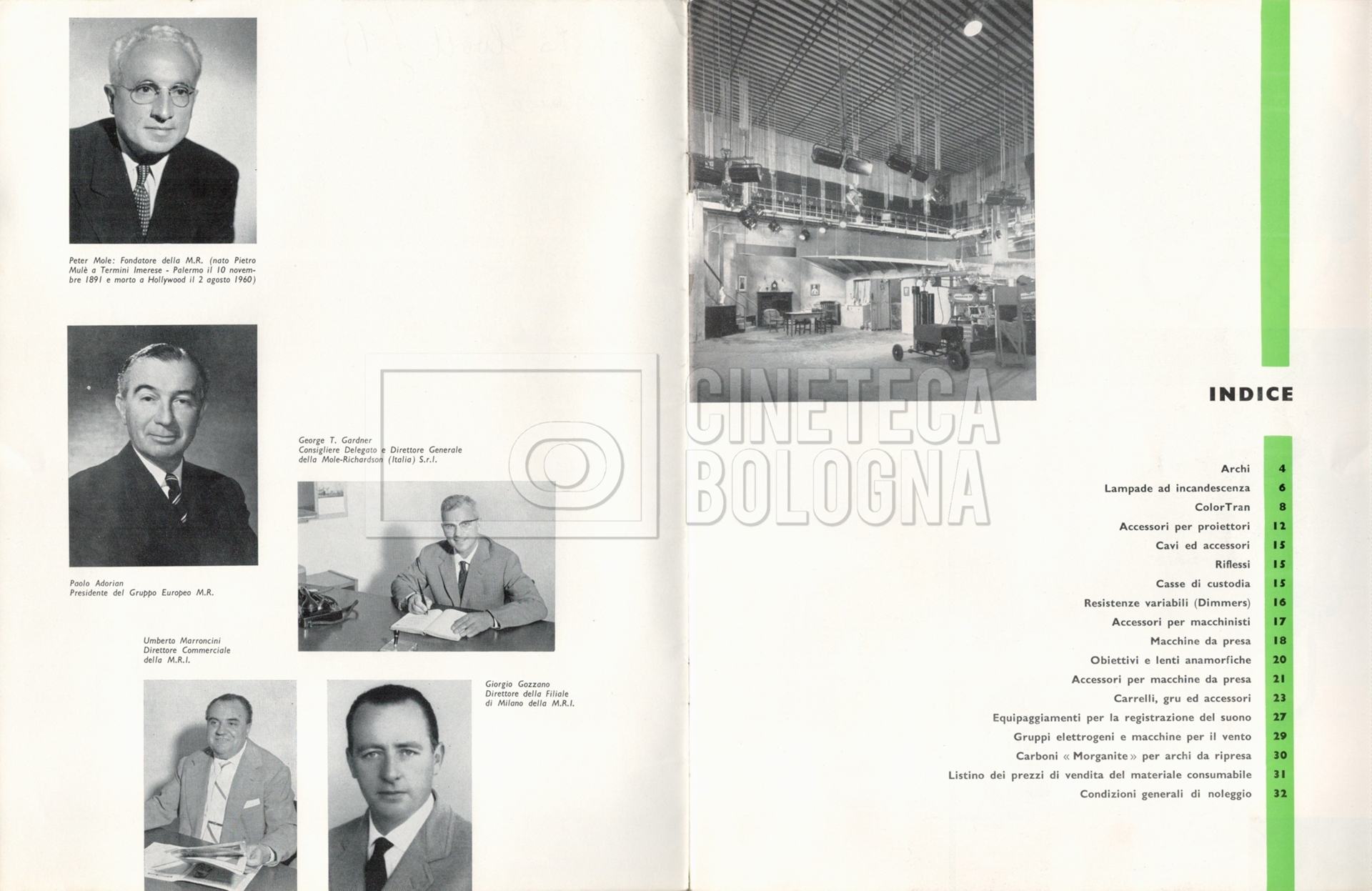 – Un listino prezzi illustrato di materiale a noleggio e di consumo ‘Mole-Richardson’ [1964];