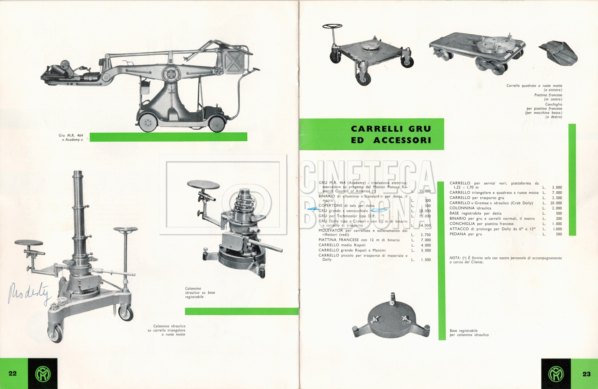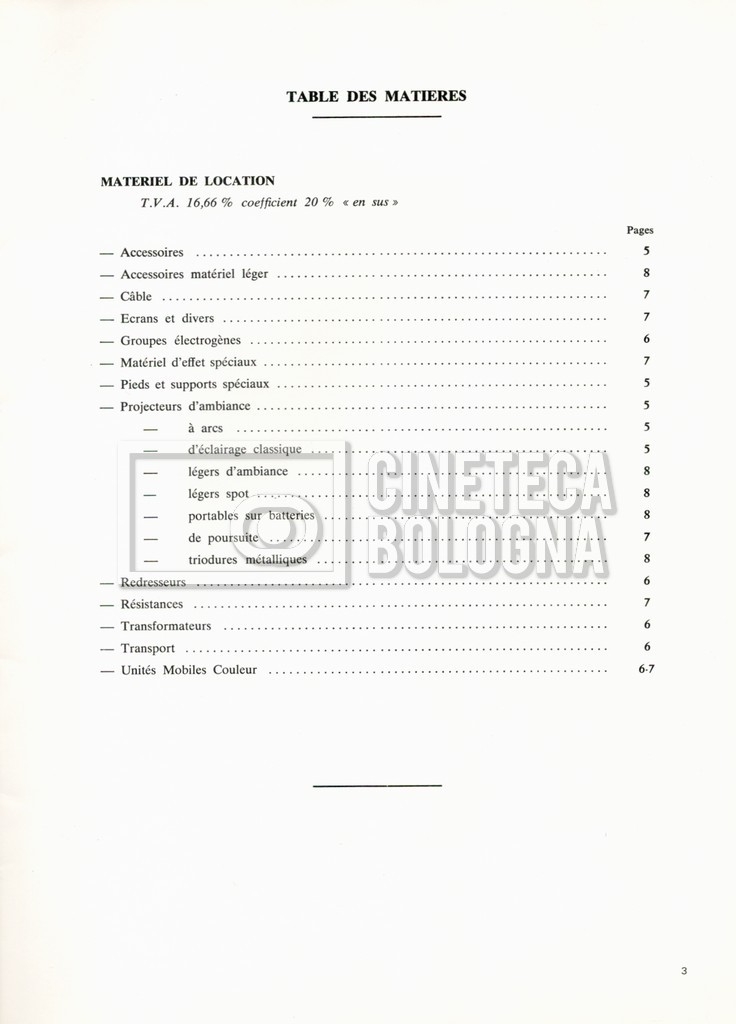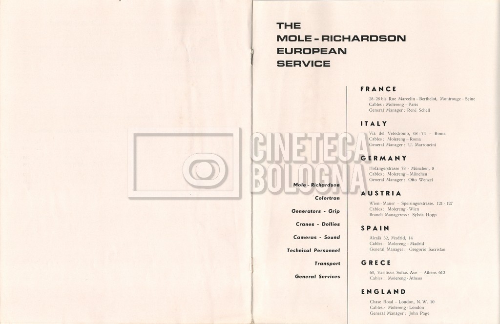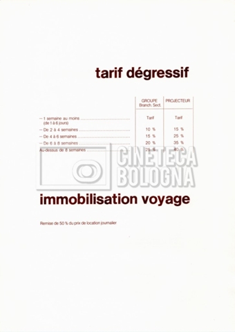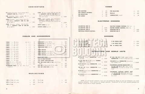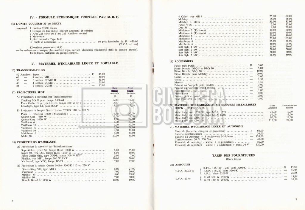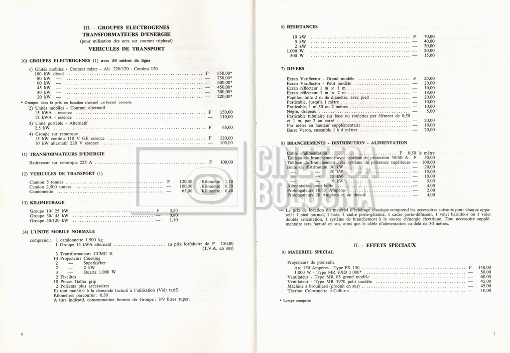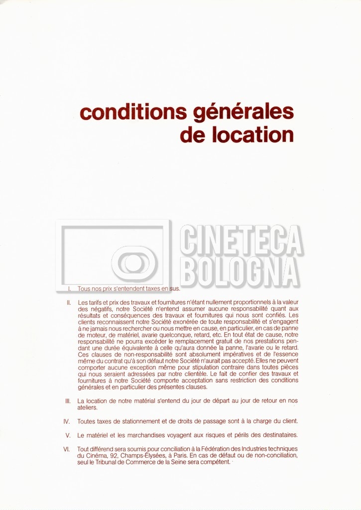 – Un tariffario per il noleggio di attrezzatura della ‘Mole-Richardson’ in Francia (gennaio 1973);