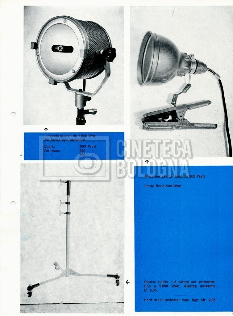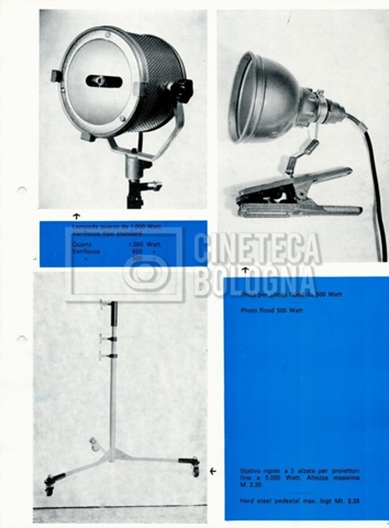 – Un catalogo delle attrezzature ‘Lampocine TV’ per la cinematografia professionale [1960-1969];
