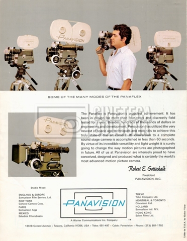 – Una brochure della macchina da presa Panaflex, della società ‘Panavision’ [1972];