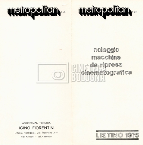 – Un catalogo per il noleggio di macchina da presa della società ‘Metropolitan’ (1975);